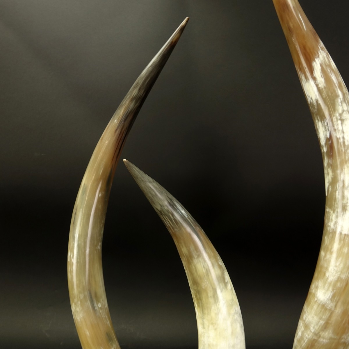 Three (3) Piece Lot of Graduated Horns Mounted on Acrylic Base. Overall size ranges from 31-5/8" H to 20" H. Condition: Good condition Estimate: $200.00 - $300.00 Domestic Shipping: Third party