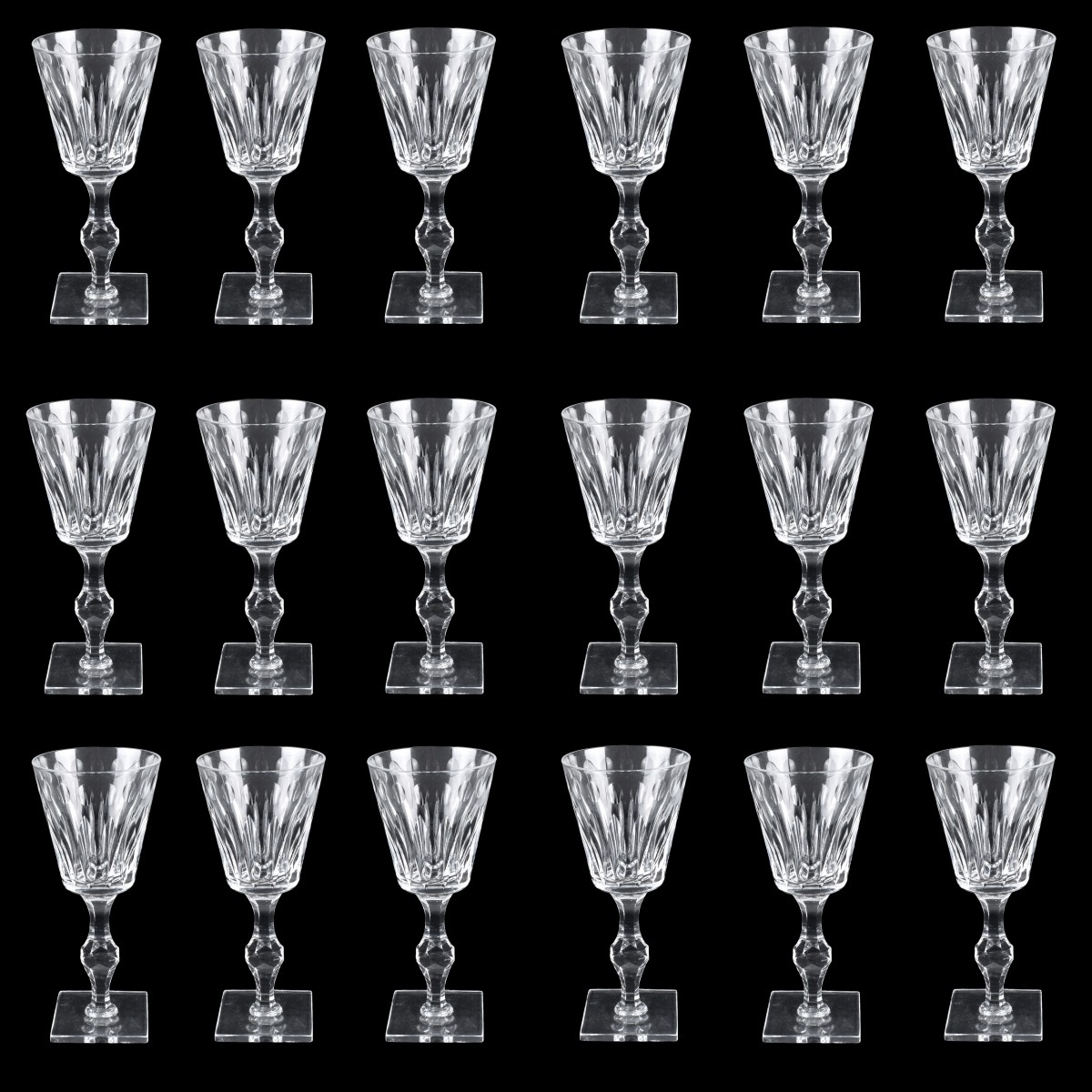 Eighteen (18) Piece Set of Hawkes "St. George" Crystal Claret Wine Glasses. A few are marked on bottom side. Measures 7" H x 3" dia. Condition: 2 have nicks to base otherwise good condition Estimate: $100.00 - $200.00 Domestic Shipping: Third party