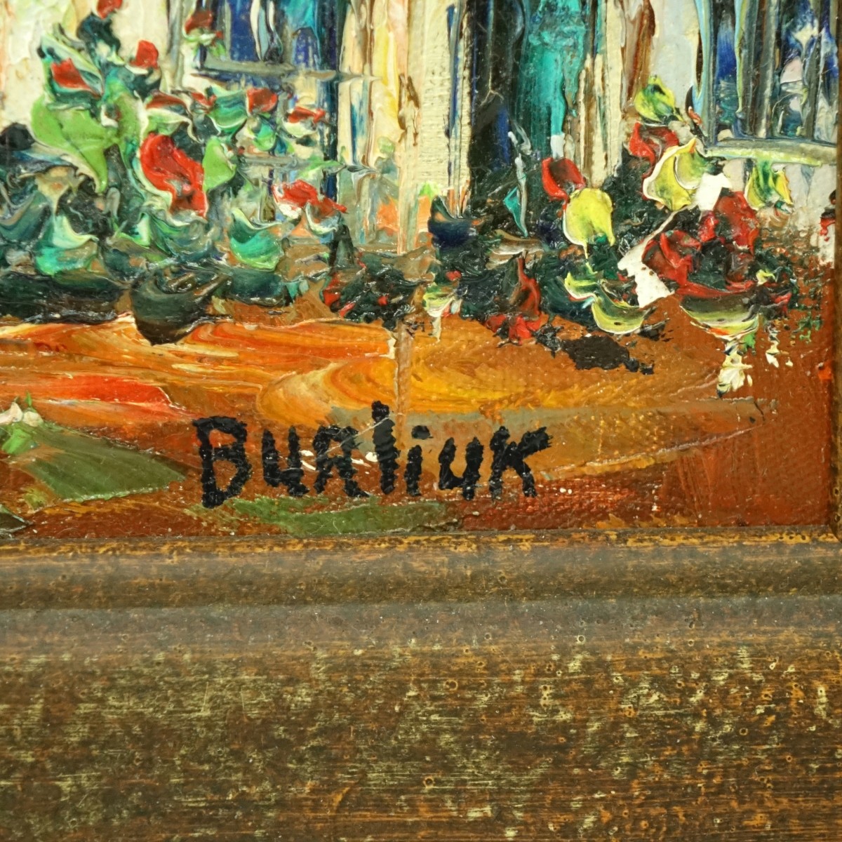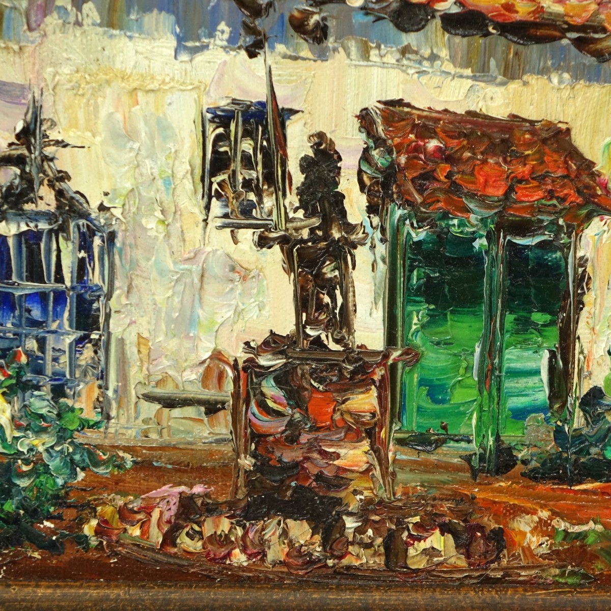 After: David Davidovich Burliuk Russian/American (1882-1967) Oil on Canvas, Distinguished House, Signed Lower Right. Measures 8-1/2" H x 10-1/2" W, frame measures 15" H x 16-7/8" W. Condition: Good condition Estimate: $200.00 - $300.00 Domestic Shipping: $95.00