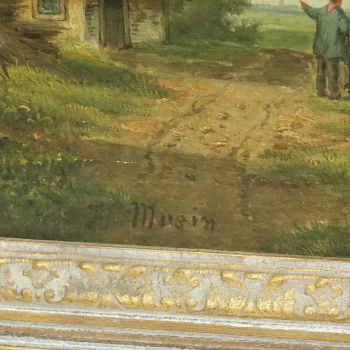 Francois Etienne Musin, Belgian (1820-1888) oil on board "Village Port". Signed lower left. Measures 10-1/4" x 16", frame measures 15-1/4" x 20-3/4" Condition: In need of cleaning, light surface scratch or in good condition. Estimate: $2000.00 - $3000.00 Domestic Shipping: $145.00