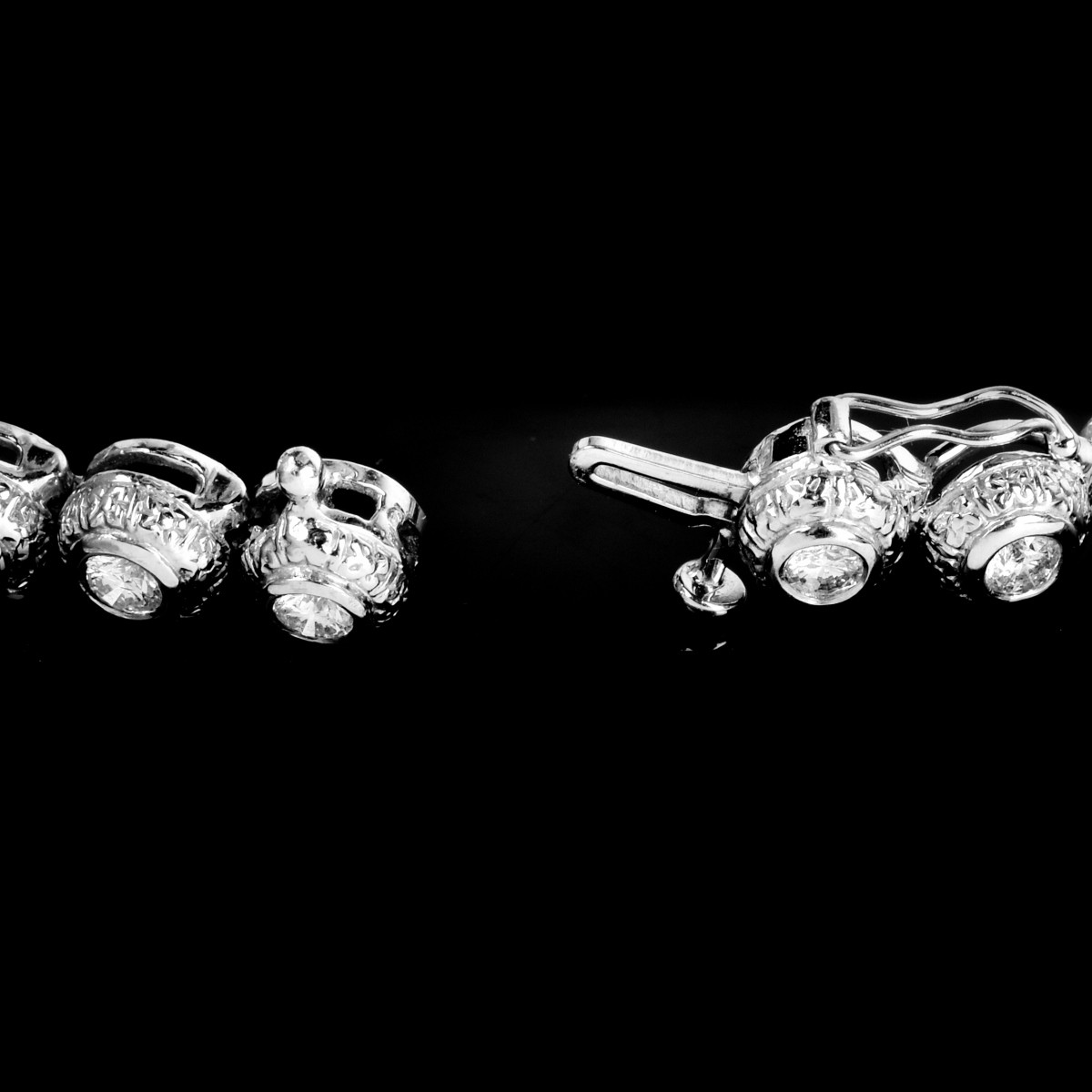Approx. 4.50 Carat TW Round Brilliant Cut Diamond and 14 Karat White Gold Bracelet. Stamped 14K. Measures 7-1/8" L, 1/4" W. Approx. weight: 26.0 grams. Condition: Very good condition. Estimate: $5000.00 - $7000.00 Domestic Shipping: $30.00