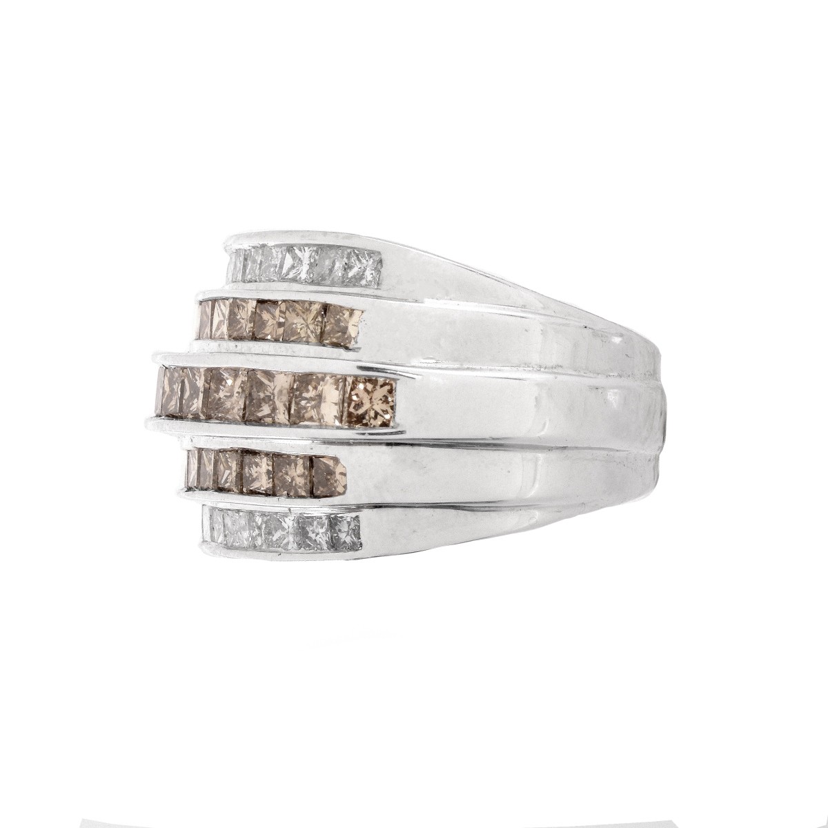 Approx. 2.98 Carat TW Square Cut Champagne and White Diamond and 14 Karat White Gold Ring. Stamped 14K. Ring size 7. Approx. weight: 9.7 grams. Condition: Very good condition. Estimate: $1500.00 - $2000.00 Domestic Shipping: $28.00