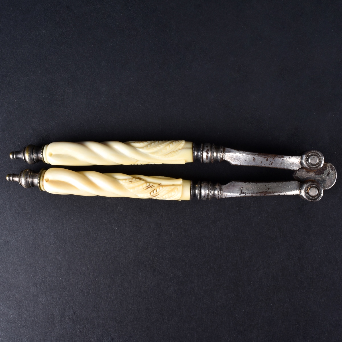 19th Century English Carved Ivory and Silver Plate Nutcracker. Unmarked. Measures 6". We Will Not Ship This Item Out of State of Florida. Anyone Having This Item Shipped Must Have a Florida Address or the Item will not be Shipped. We will Not Knowingly Sell Endangered Species outside of Legal Channels. Condition: Some corrosion to silver plate otherwise good condition Estimate: $50.00 - $150.00 Domestic Shipping: $32.00
