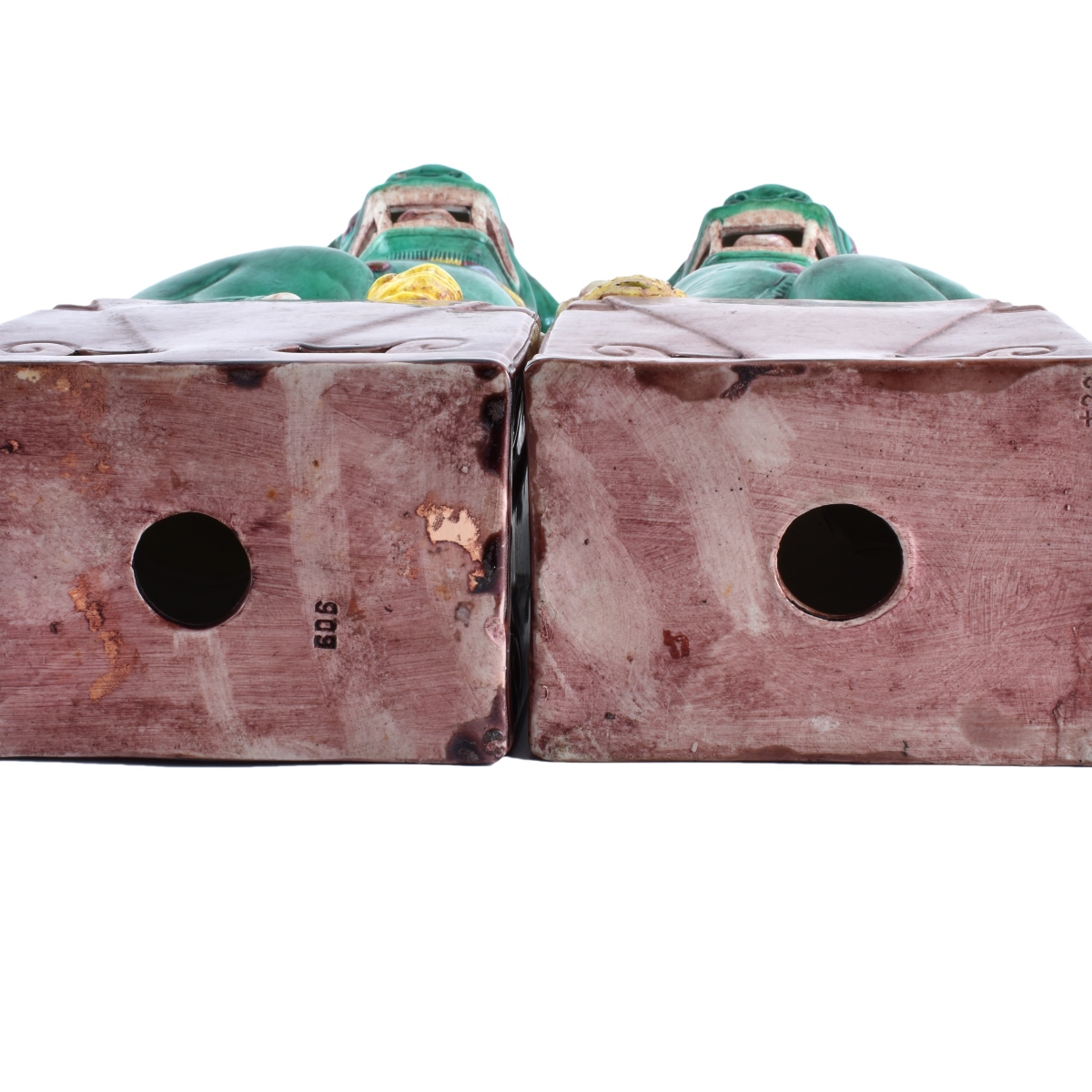 Pair Vintage Chinese Ceramic Foo Dogs. Imperial forms with Sancai glazes. Unsigned. Measures 16-1/2" H. Condition: Good condition. Estimate: $300.00 - $500.00 Domestic Shipping: $105.00