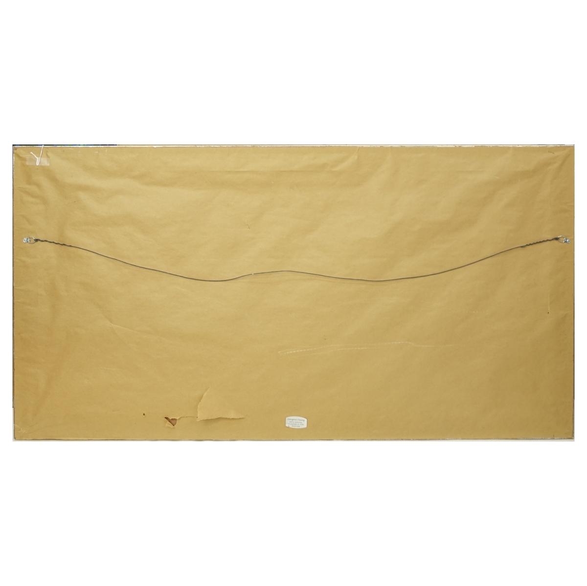 Contemporary Oil On Masonite. The gallery has been informed it is titled "Schizophrenic" by Michael Ryan. Unsigned, no documentation. Measures 22" x 47-1/2" (sight), frame measures 28" x 53". Condition: Good condition. Estimate: $150.00 - $250.00 Domestic Shipping: Third party