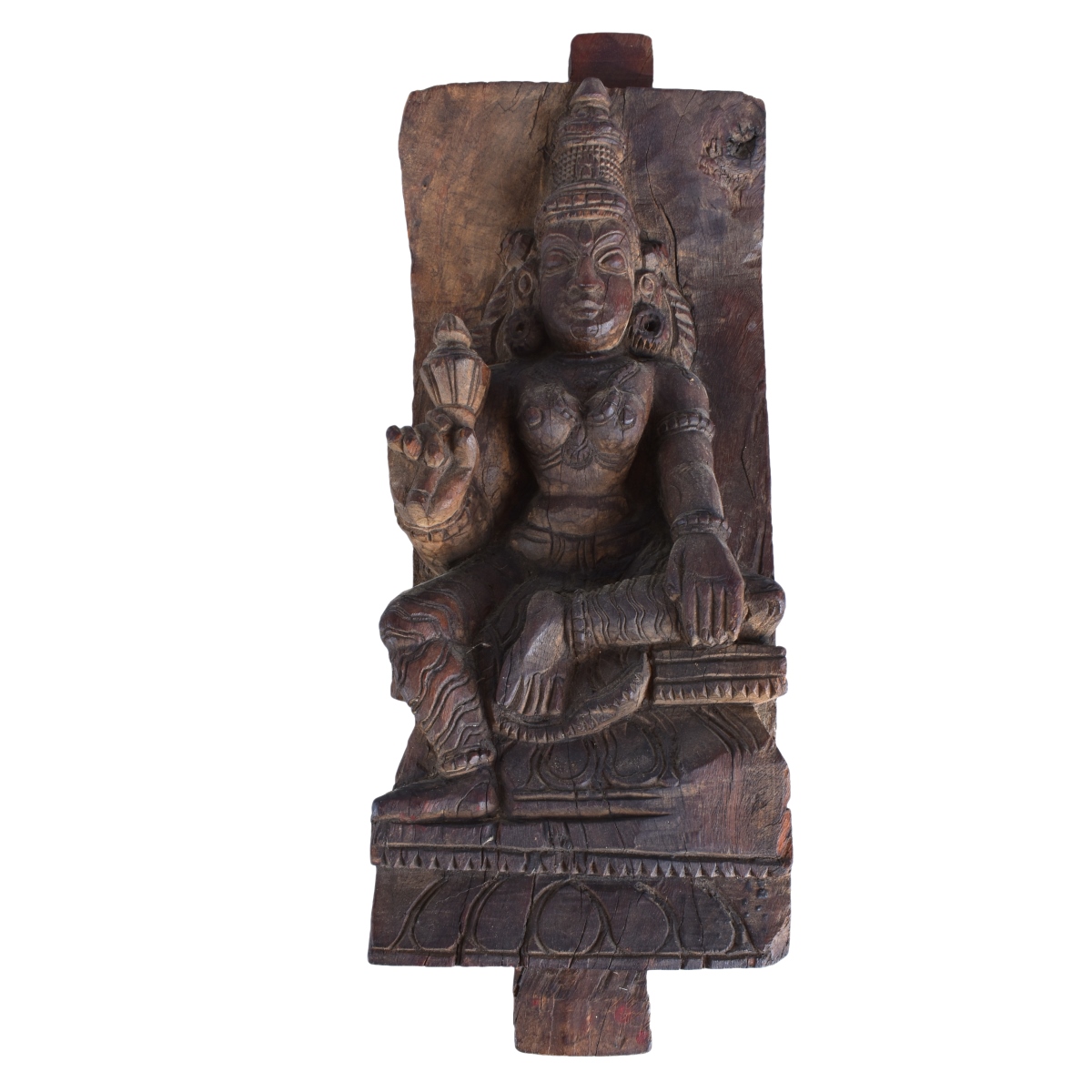 Grouping of Four (4) Oriental Items. Includes: Thai figural wood carving, pair of Chinese bone carvings mounted on wood panels with stands, and Indian painting on celluloid. large carving measures 17" H x 6-1/8" W, bone carvings measures 4-3/4" H x 2-1/2" W. Condition: Large carving is in antique condition, other items are in good condition Estimate: $50.00 - $100.00 Domestic Shipping: Third party