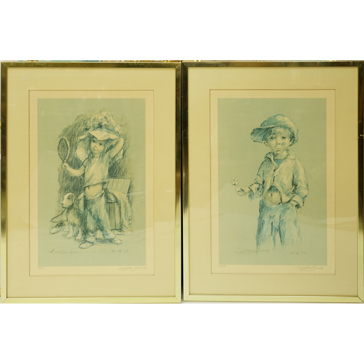 Leighton Jones, American (20th C) Signed Prints "Boy", "Girl". Signed lower left in pencil. Frames measure 25" x 19",. Condition: Good condition. Estimate: $50.00 - $100.00 Domestic Shipping: Third party