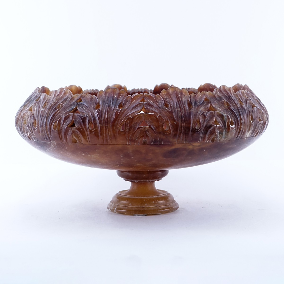 Large Carved Alabaster Footed Centerpiece Bowl. Good condition.