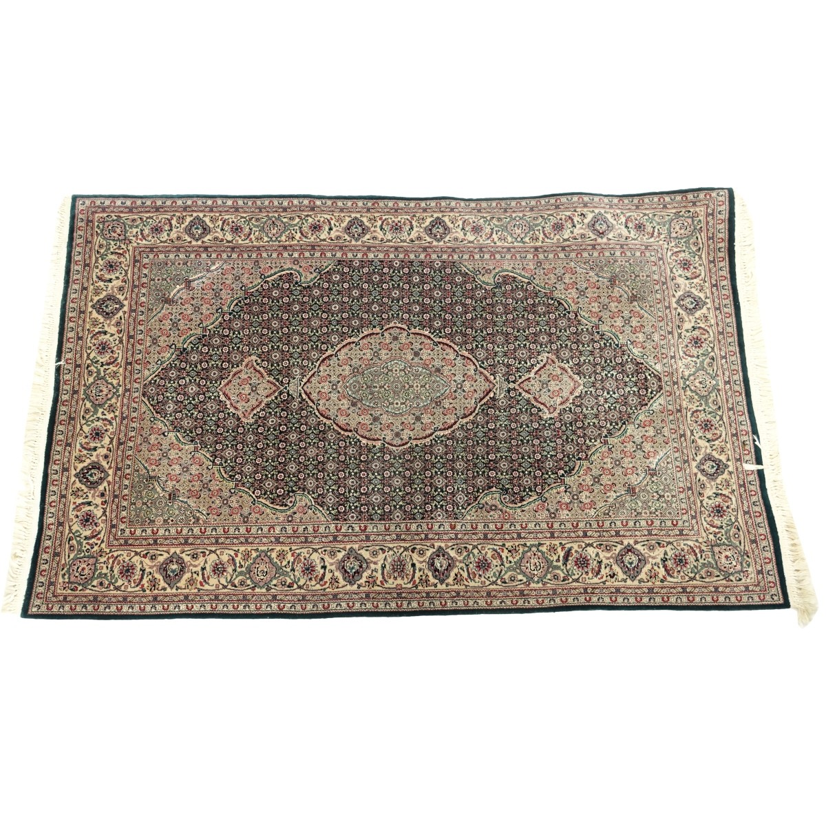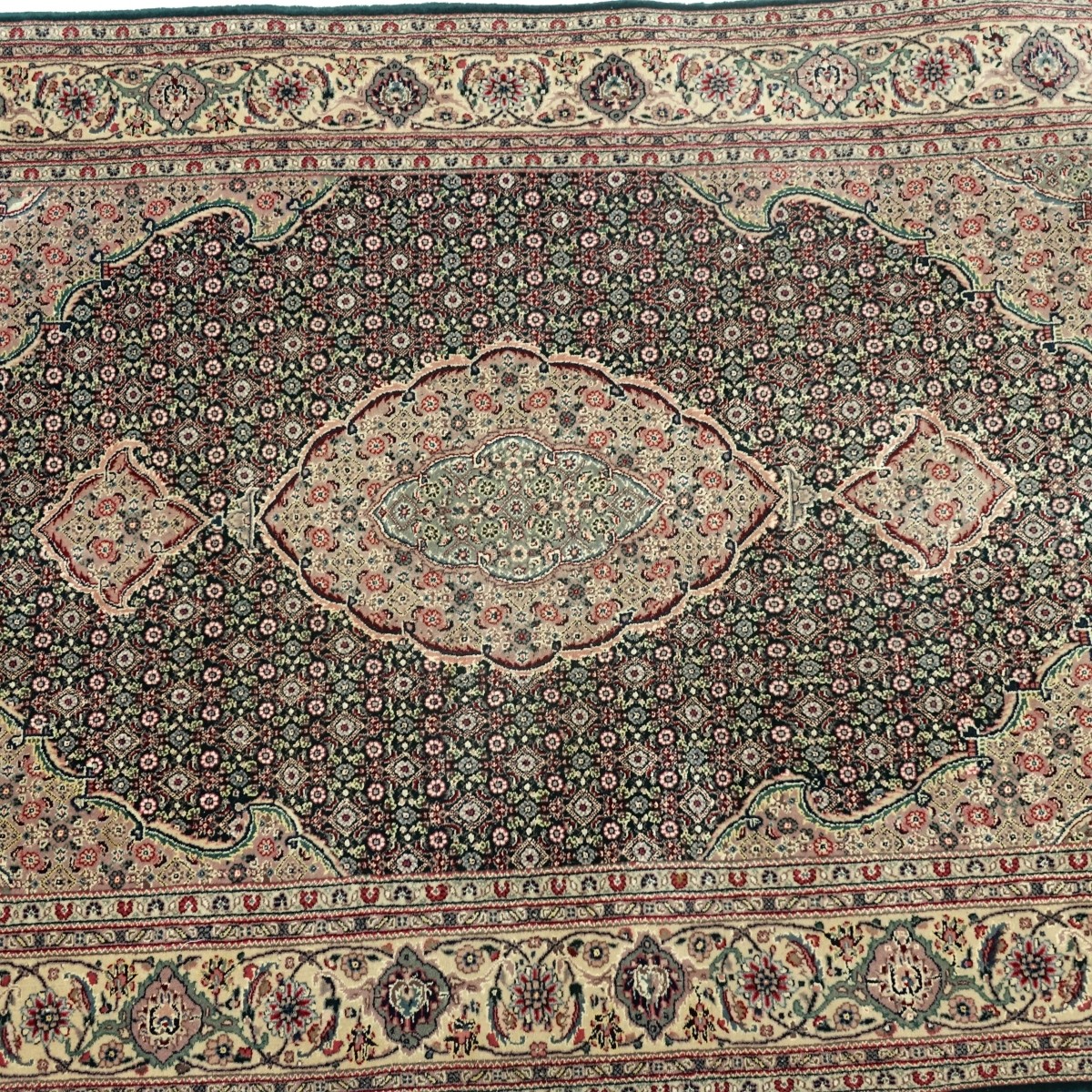Semi Antique Persian Tabriz Mahi Style Oriental Rug. Closed center with elaborate patterns on cream and green ground. Measures 76" H x 48" W. Condition: Need cleaning otherwise good condition Estimate: $300.00 - $400.00 Domestic Shipping: Third party