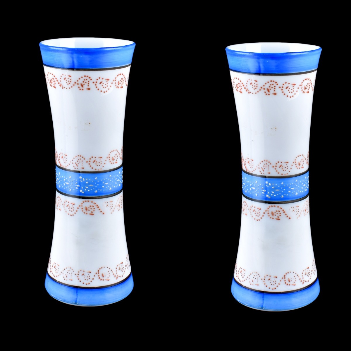 Pair of Hand Painted Bristol Glass Vase. Unmarked. Measures 9-1/2" H. Condition: Good condition Estimate: $50.00 - $150.00 Domestic Shipping: $66.00