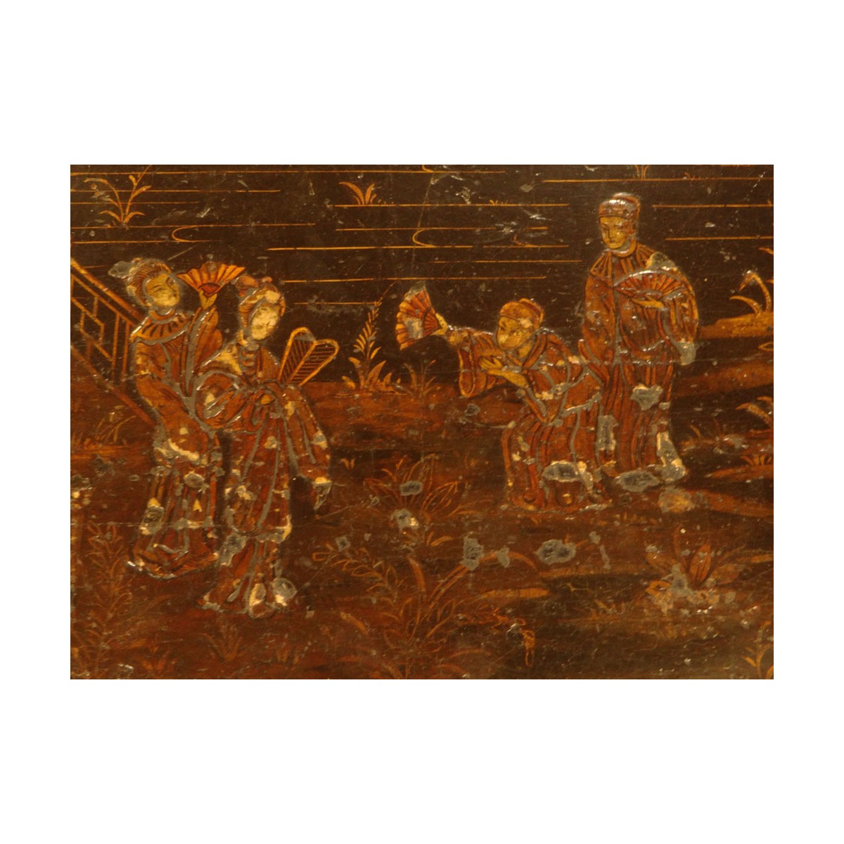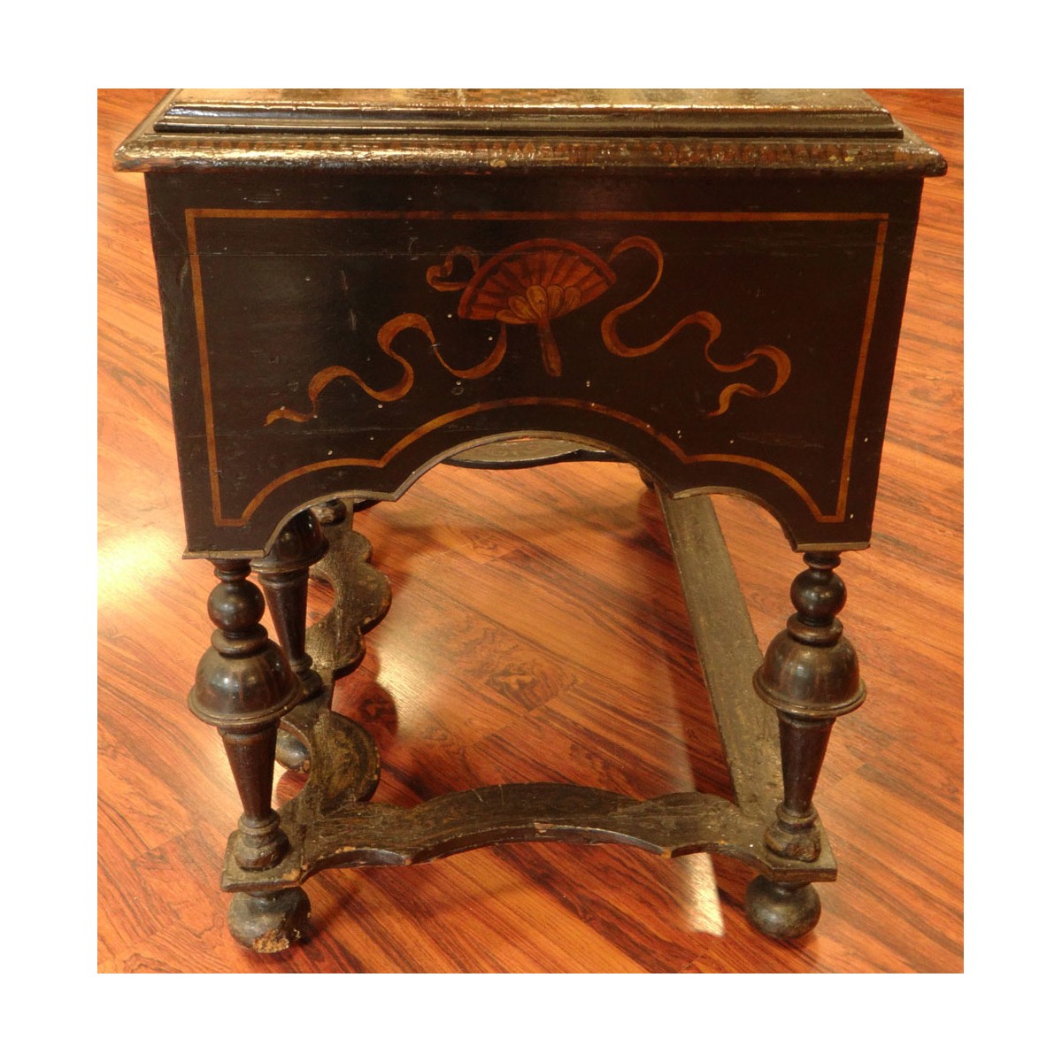18th Century English William and Mary Chinoiserie Decorated Lowboy. Decorated Top Above Three (3) Drawers, All Completely Decorated with Chinese Artistic Influences with Fanciful Chinese Imagery. Resting Upon Trumpet Turned Legs with Ball Feet and Scalloped Stretcher Support. Measures 32 Inches Tall by 41 Inches Long and 24 Inches Wide. (estimate $200-$300) Shipping: Third Party