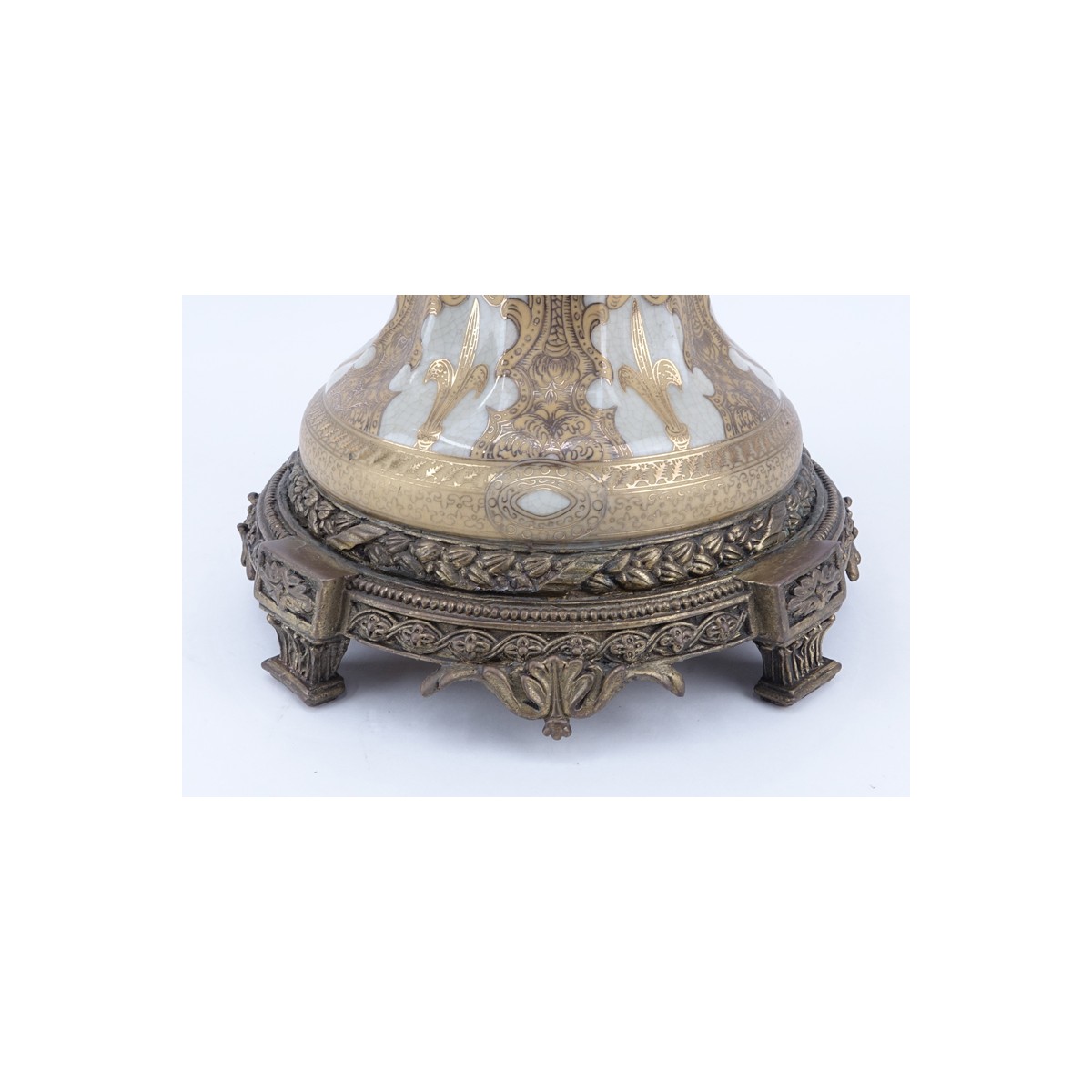 Monumental Antique Style Large Porcelain Vase With Bronze Mountings. Unsigned. Good condition. Measures 26" H x 18" W. Shipping: Third party. (estimate $100-$200)