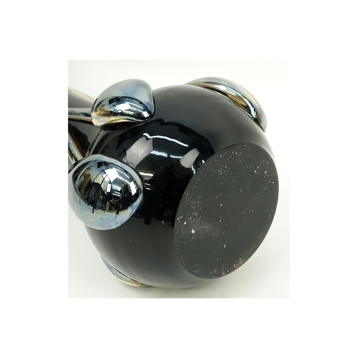 Ion Tamaian, Romanian (20th C) Large Art Glass Floor Vase. Black ground with applied clear glass overlay. Signed. Good condition. Measures 25-1/2" H x 8" Dia at top. Shipping: Third party. (estimate $100-$200)