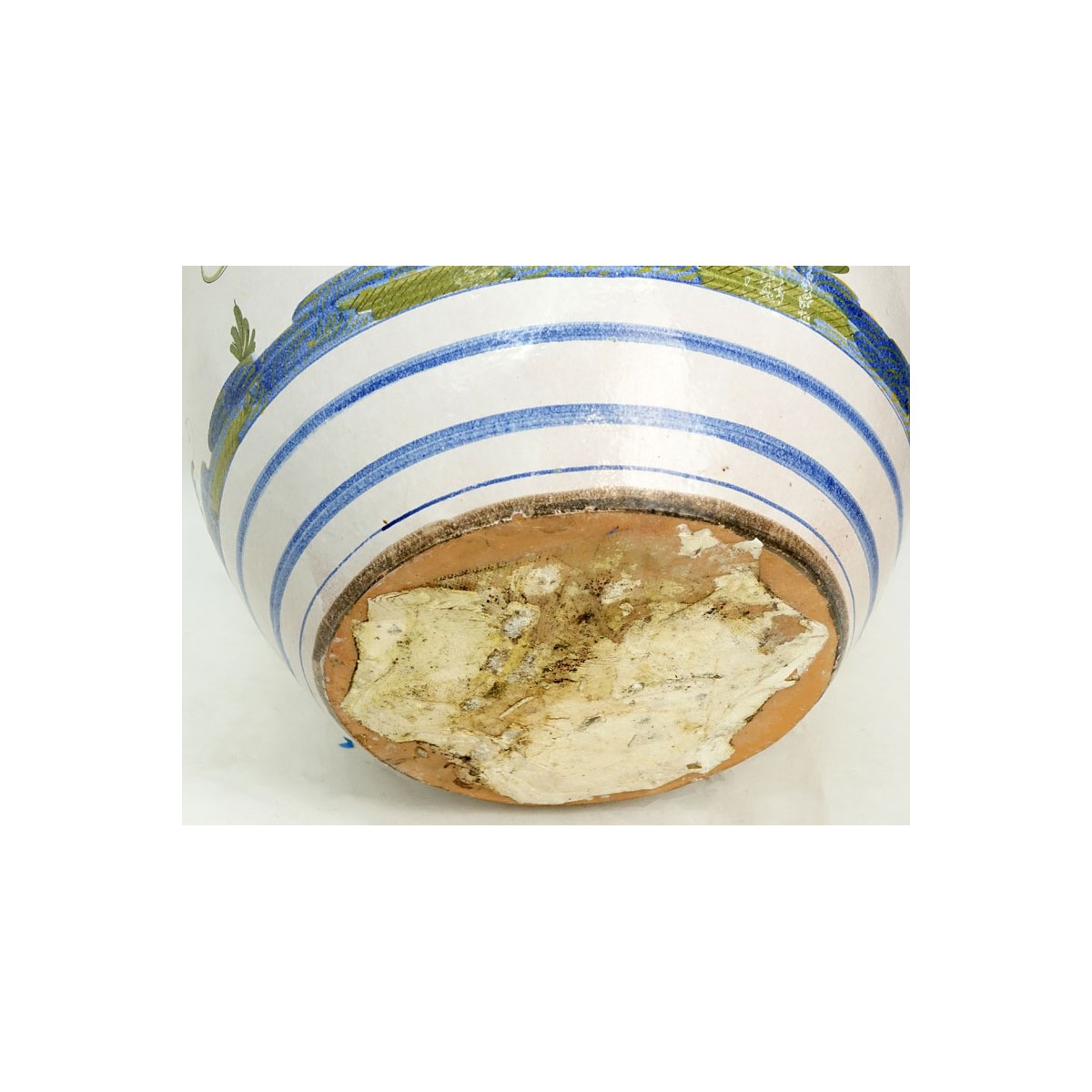 Large Italian Style Faience Ceramic Planter. Typical marks to surface associated with ceramic, good condition. Measures 16-1/2 x 21" Dia. (estimate $50-$100) Shipping: Third party.