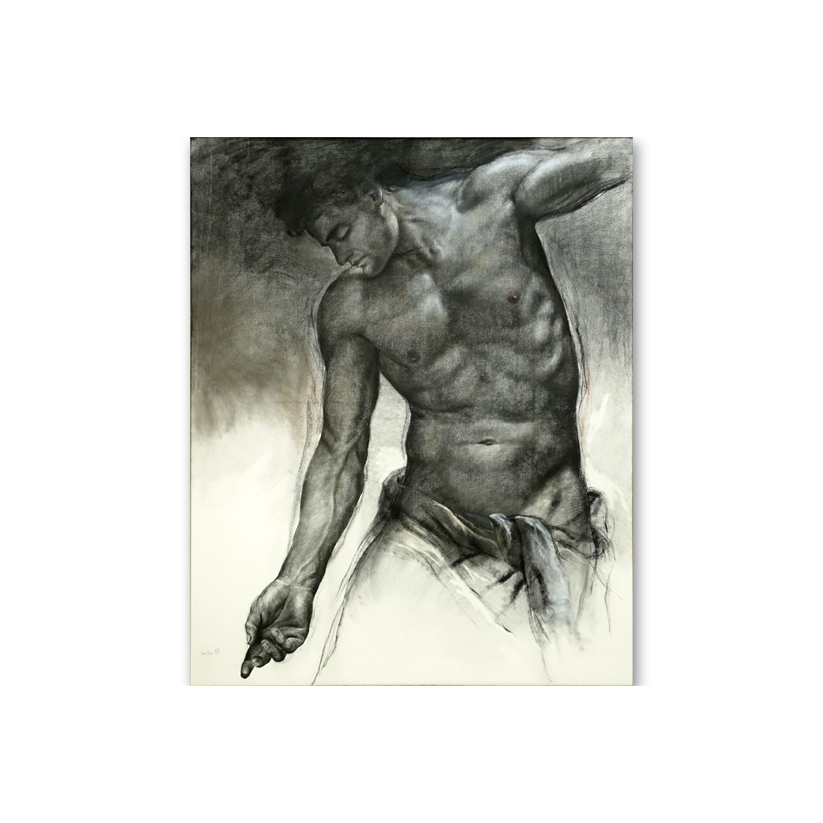 Impressive Contemporary Pencil, Pastel and Oil On Canvas "Inclinacion" Signed lower left. Good condition. Measures 67-3/4" x 54-3/4", frame measures 81" x 70". (estimate $400-$600) Shipping: Third party.