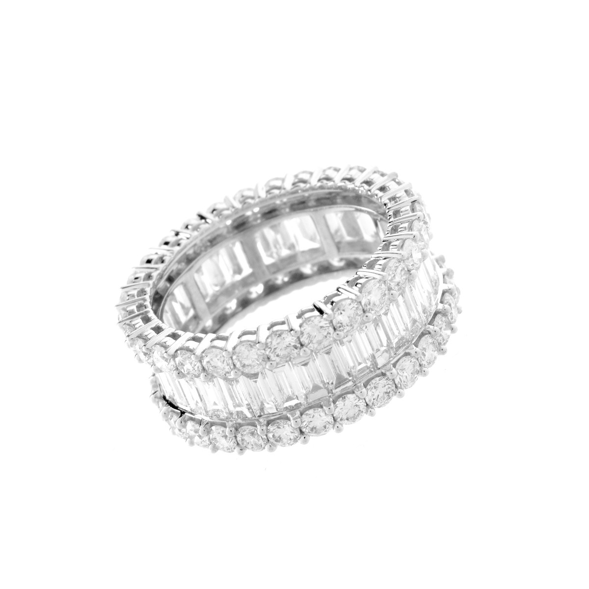 Approx. 6.08 Carat TW Baguette and Round Brilliant Cut Diamond and 18 Karat White Gold Eternity Band. Diamonds D-E-F color, VS1-VS2 clarity. Ring size 6. Approx. weight: 6.1 grams. Condition: Very good condition. Estimate: $6000.00 - $8000.00 Domestic Shipping: $28.00