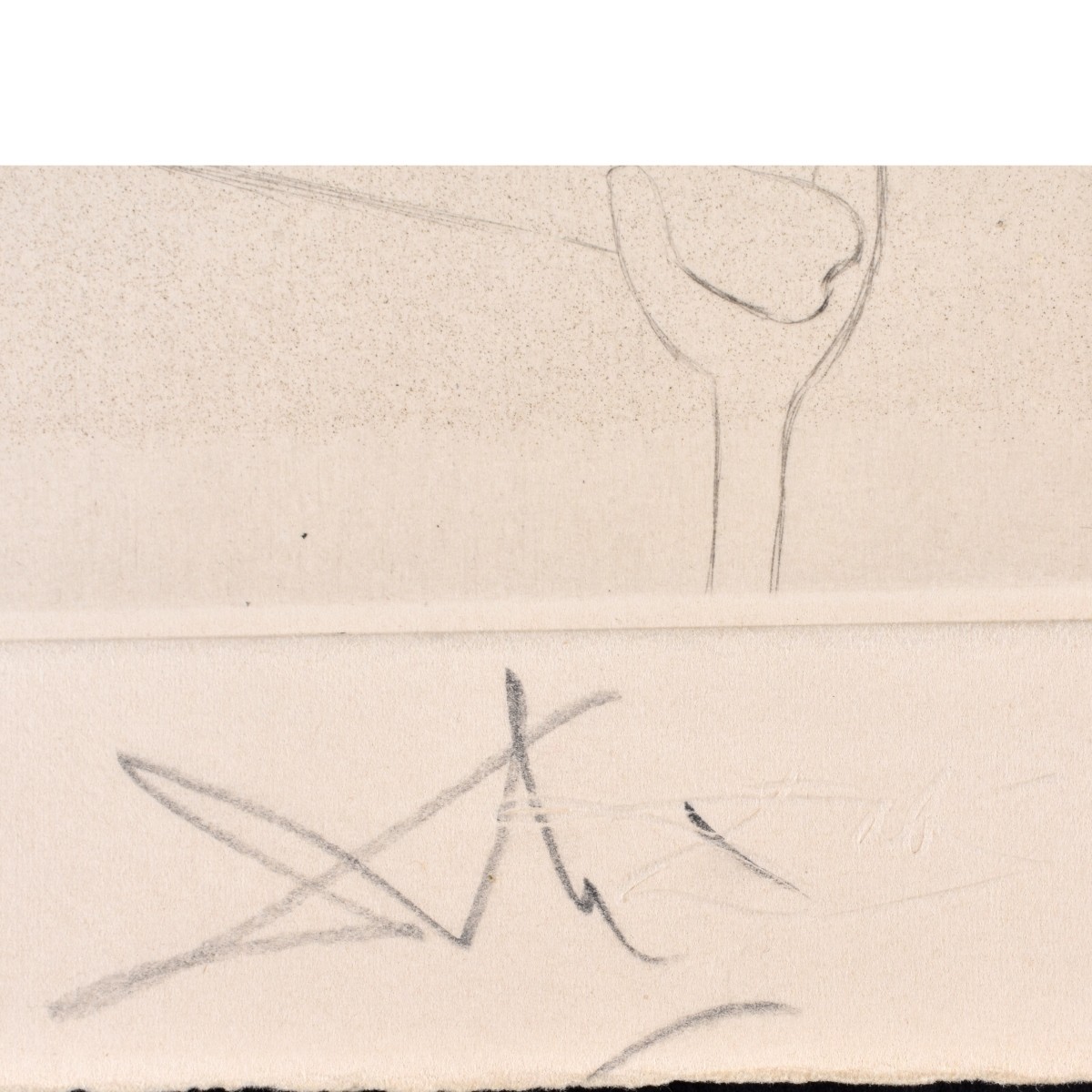 Salvador Dali, Spanish (1904-1989) Drypoint Hand colored Etching "Tete de veau". Signed with Dali watermark as well as pencil signed and EA. Impression measures 12-1/2" x 9-1/4", sheet measures 15" x 11-1/4". Condition: Toning or in good condition. Estimate: $200.00 - $400.00 Domestic Shipping: $88.00