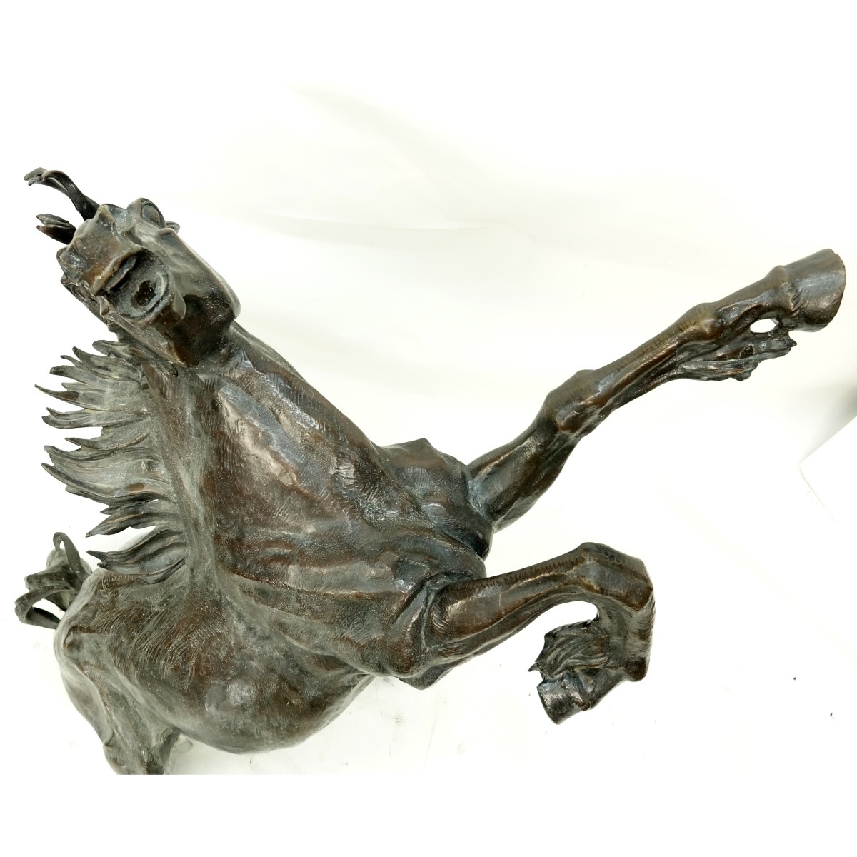 Antoine-Louis Barye, French (1796 - 1875) Large Scale Bronze Sculpture, Rearing Stallion, Signed "Barye" Lower. Spencer Gallerie certificate of appraisal included. Measures 56" H x 50" W x 32-1/2" D. Condition: Good condition Estimate: $2000.00 - $4000.00 Domestic Shipping: Third party