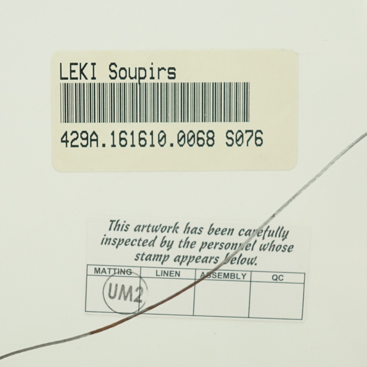 Linda Le Kinff, France (20th Century) Serigraph on Paper "Soupir" Pencil Signed and Numbered 381/450 on Lower Margin. Label attached en verso. Measures 35" H x 9-1/4" W, frame measures 46" H x 26-1/2" W. Condition: Good condition Estimate: $100.00 - $200.00 Domestic Shipping: Third party