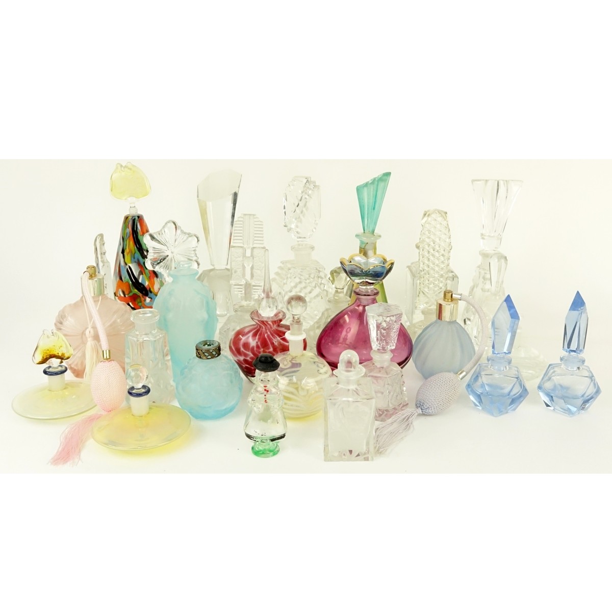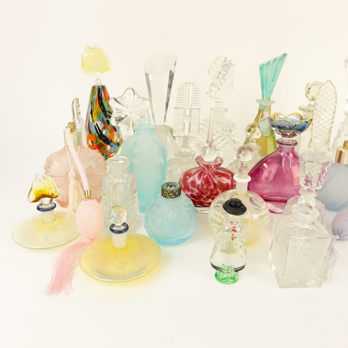 Large Collection of Art Deco Perfume Bottles. Tallest measures 8" H, smallest measures 3" H. Condition: A few bottles are missing the stoppers, nicks. Condition: A few bottles are missing the stoppers, nicks. Overall good condition. Estimate: $150.00 - $250.00 Domestic Shipping: Third Party Relist: 3.6.19 lot 305 2500097