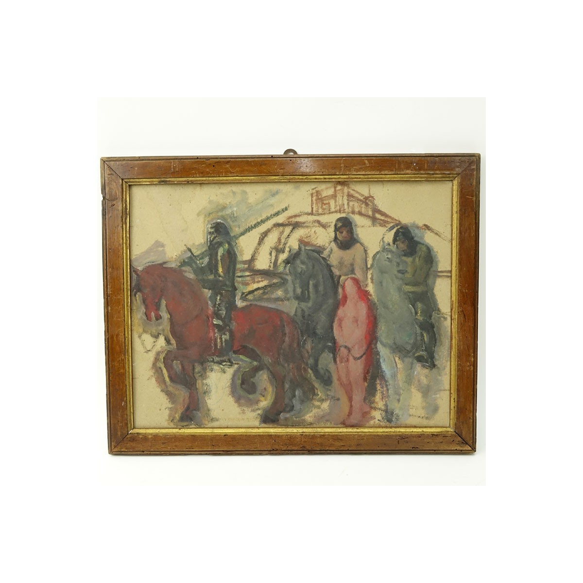 Attributed to: Arnold Bockilin, Swiss (1827 - 1901) Colored pencil "Symbolist Scene" Unsigned. Toning, stains. Measures 13-1/2" x 17-3/8", frame measures 15-3/4" x 19-3/4". Bocklin died in Florence (Fiesole) in 1901. This piece was found by a Florentine picker in a house in Florence. (estimate $250-$350) Shipping $75.00