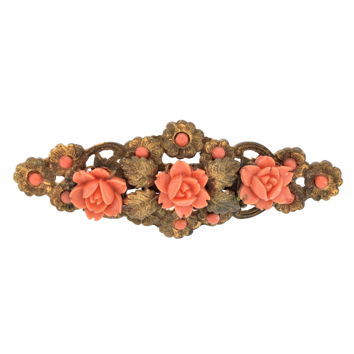 Collection of Vintage and Antique Silver and Costume Jewelry. Seven pieces Including a Silver and Oval Blue Stone (possibly glass) pendant necklace, three sterling silver brooches (one accented with marcasite), 800 silver hat brooch, metal brooch with imitation coral and an American eagle pin. Blue stone pendant measures 1-1/8" L; chain measures 16" L. Silver and marcasite brooch measures 1-1/2" H, 2-1/2" W. Approx. total weight: 86.9 grams. Condition: Good antique / vintage condition. Estimate: $50.00 - $100.00 Domestic Shipping: $32.00
