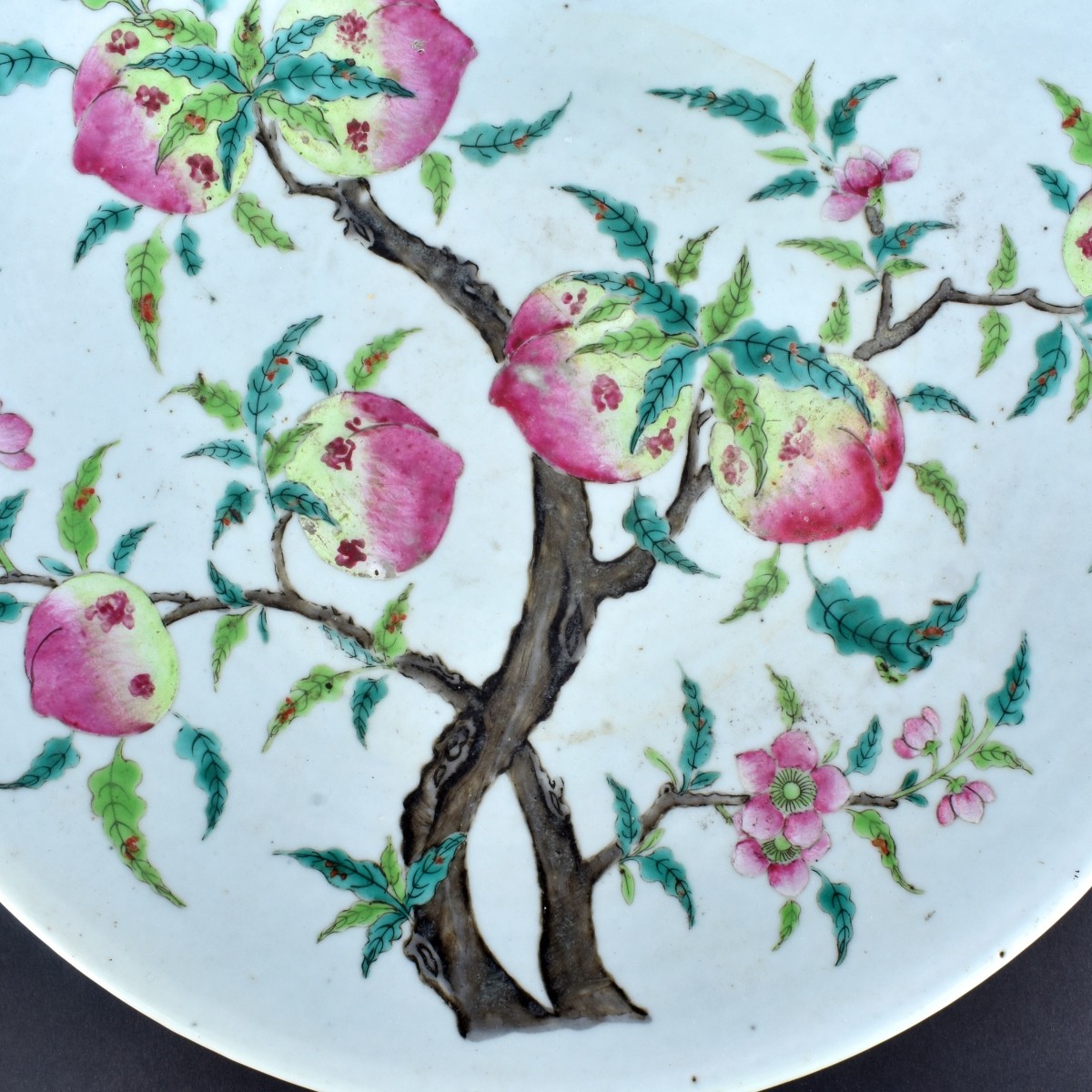 19th Century Chinese Export Porcelain Charger with Pomegranate Motif. Unsigned. Measures 14-3/4" dia. Condition: Good condition Estimate: $200.00 - $400.00 Domestic Shipping: $88.00