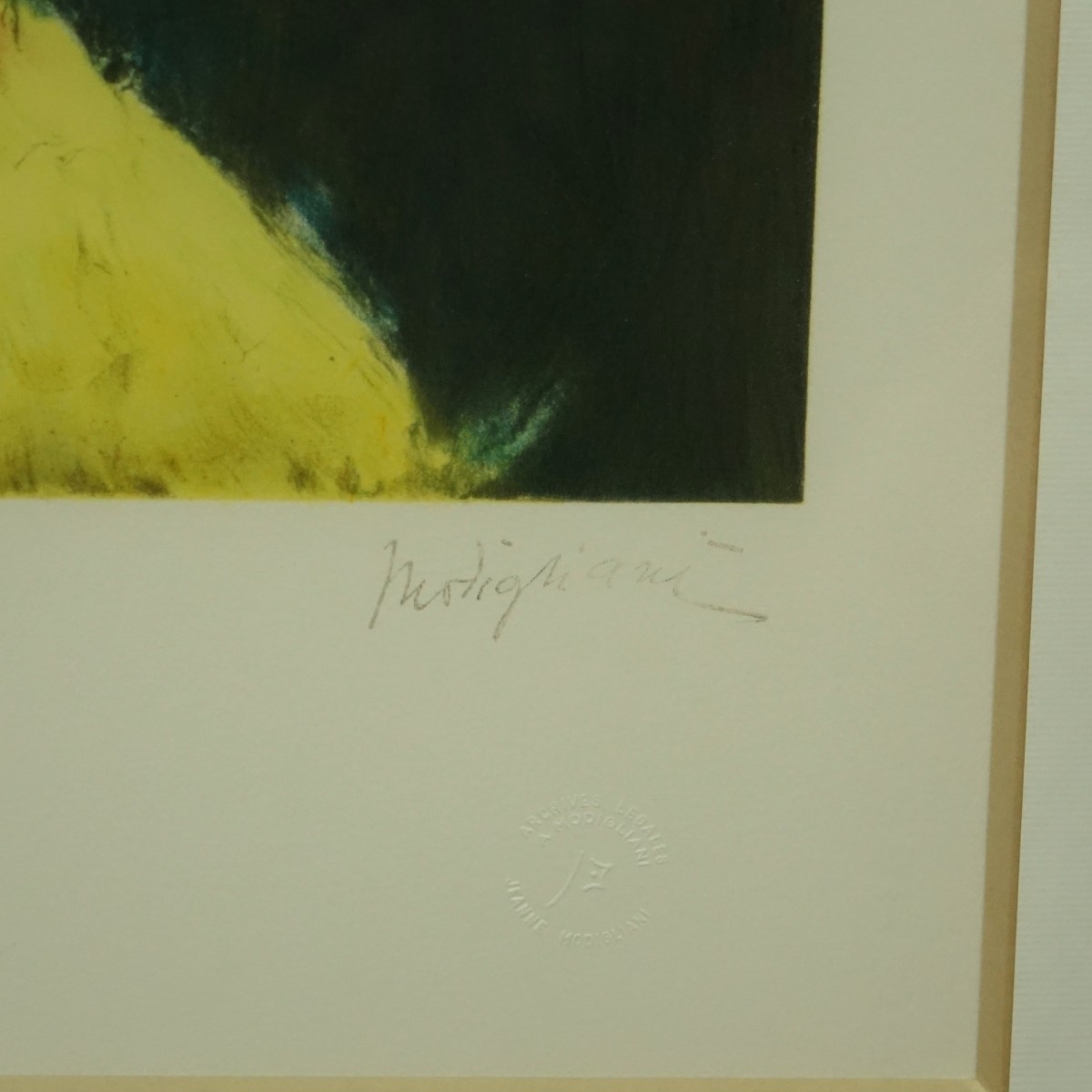 Amedeo Modigliani, French (1884 - 1920) Lithograph on Arches Paper, Portrait of a Young Women, Pencil Signed and Numbered 90/100. Blind stamps on lower margin. Measures 27" H x 20" W, frame measures 34-1/4" H x 26-5/8" W. Condition: Good condition Estimate: $400.00 - $600.00 Domestic Shipping: Third party