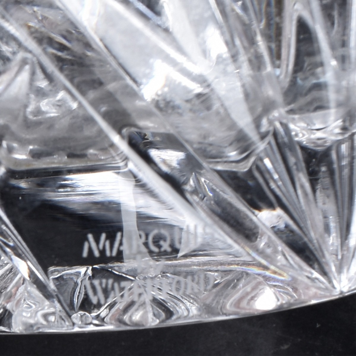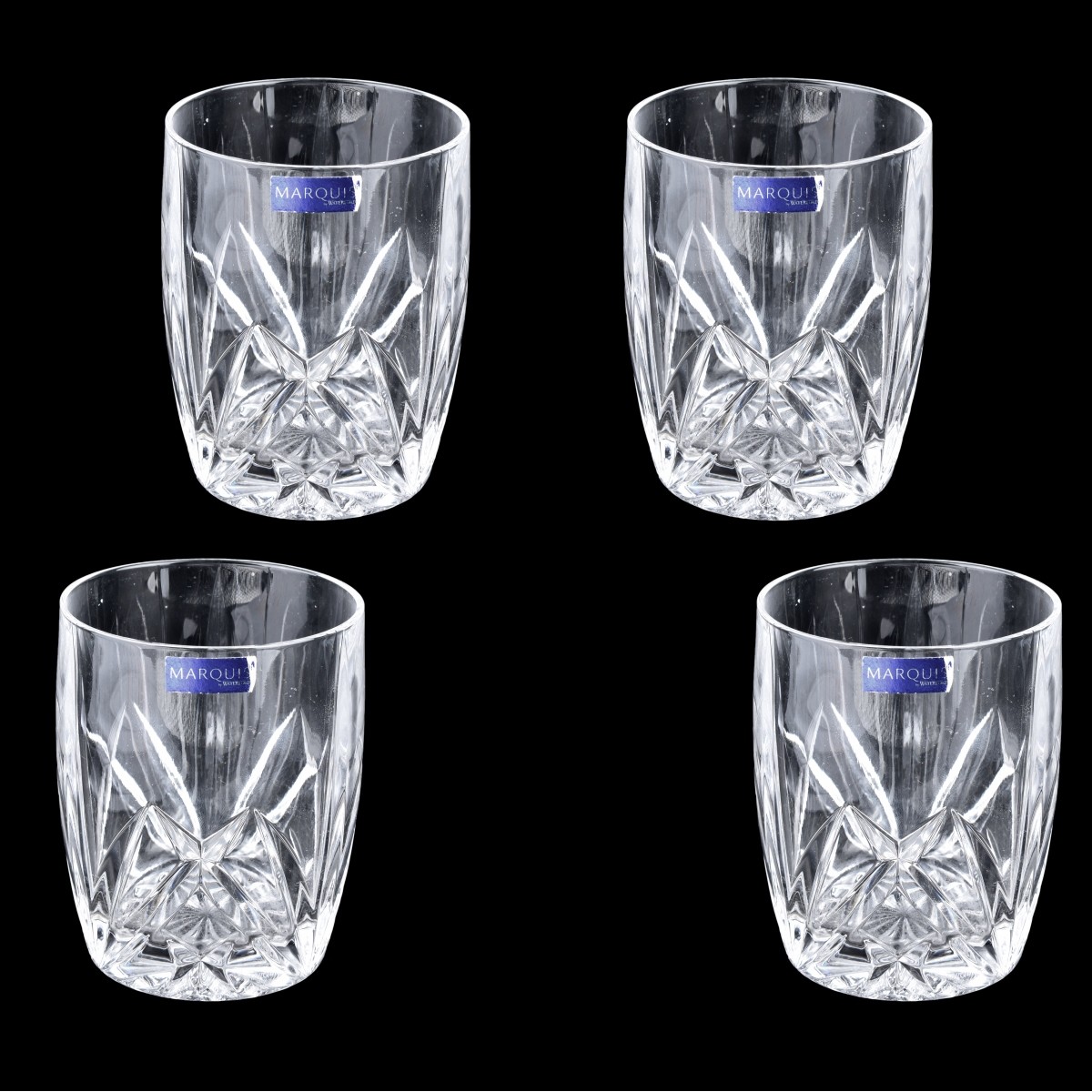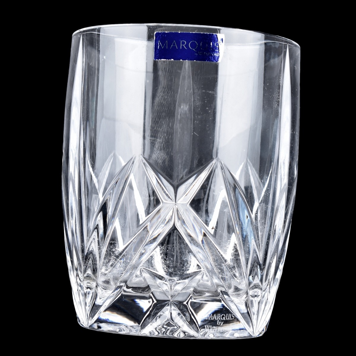 Four (4) Waterford "Brookside" Crystal Double Old Fashion Glasses. Acid etched Marquis by Waterford to side. Some with blue Marques stickers. Measures 4-13/8" H x 3-3/8" W Condition: Good condition. Estimate: $50.00 - $150.00 Domestic Shipping: $58.00