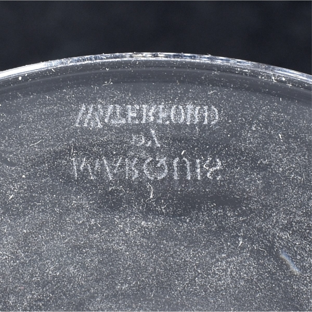 Four (4) Waterford Crystal "Hanover Platinum" Crystal Champagne Flutes. Signed acid etched Marquis by Waterford to bottom. Measure 8-3/4" H x 2-1/4" W Condition: Good condition. Estimate: $50.00 - $150.00 Domestic Shipping: $62.00