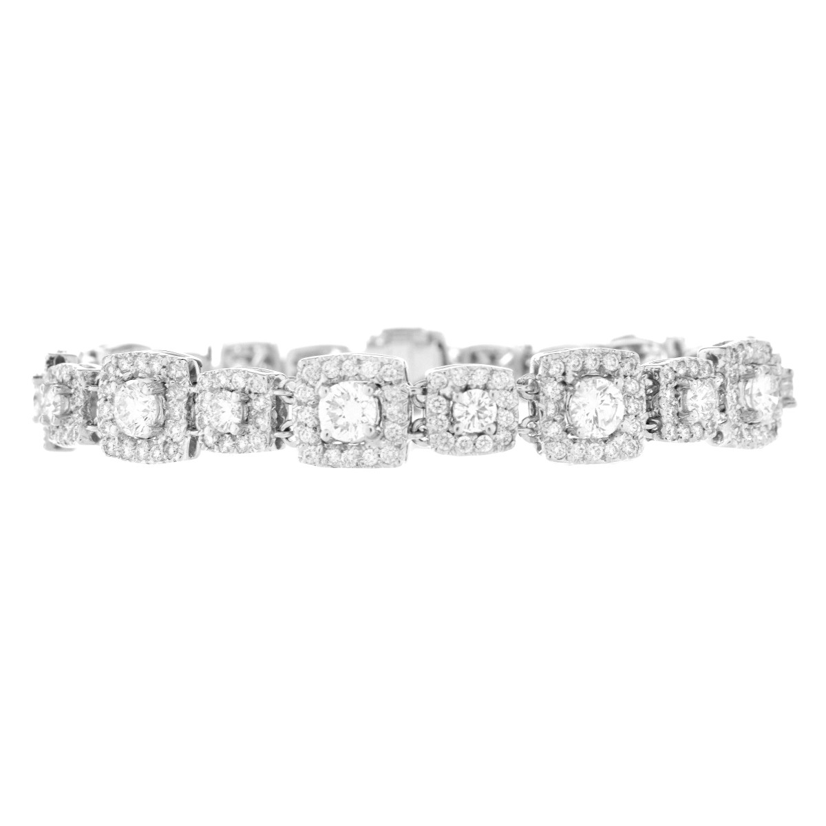 Approx. 8.0 Carat TW Round Brilliant Cut Diamond and 18 Karat White Gold Bracelet. Diamonds G color, VS clarity. Measures 5/16" W. Approx. weight: 21.1 grams. Condition: Very good condition. Estimate: $4500.00 - $6500.00 Domestic Shipping: $30.00