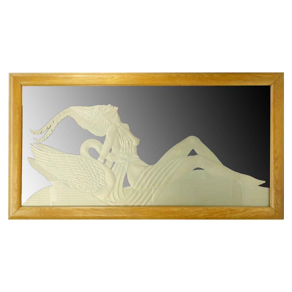 Bolae (20th C) Art Deco Etched Glass Wall Hanging Art "Leda and a Swan" Signed and Dated 1983, Numbered 5/10. Measures 43" H x 79" W. Condition: Good condition Estimate: $800.00 - $1200.00 Domestic Shipping: Third party