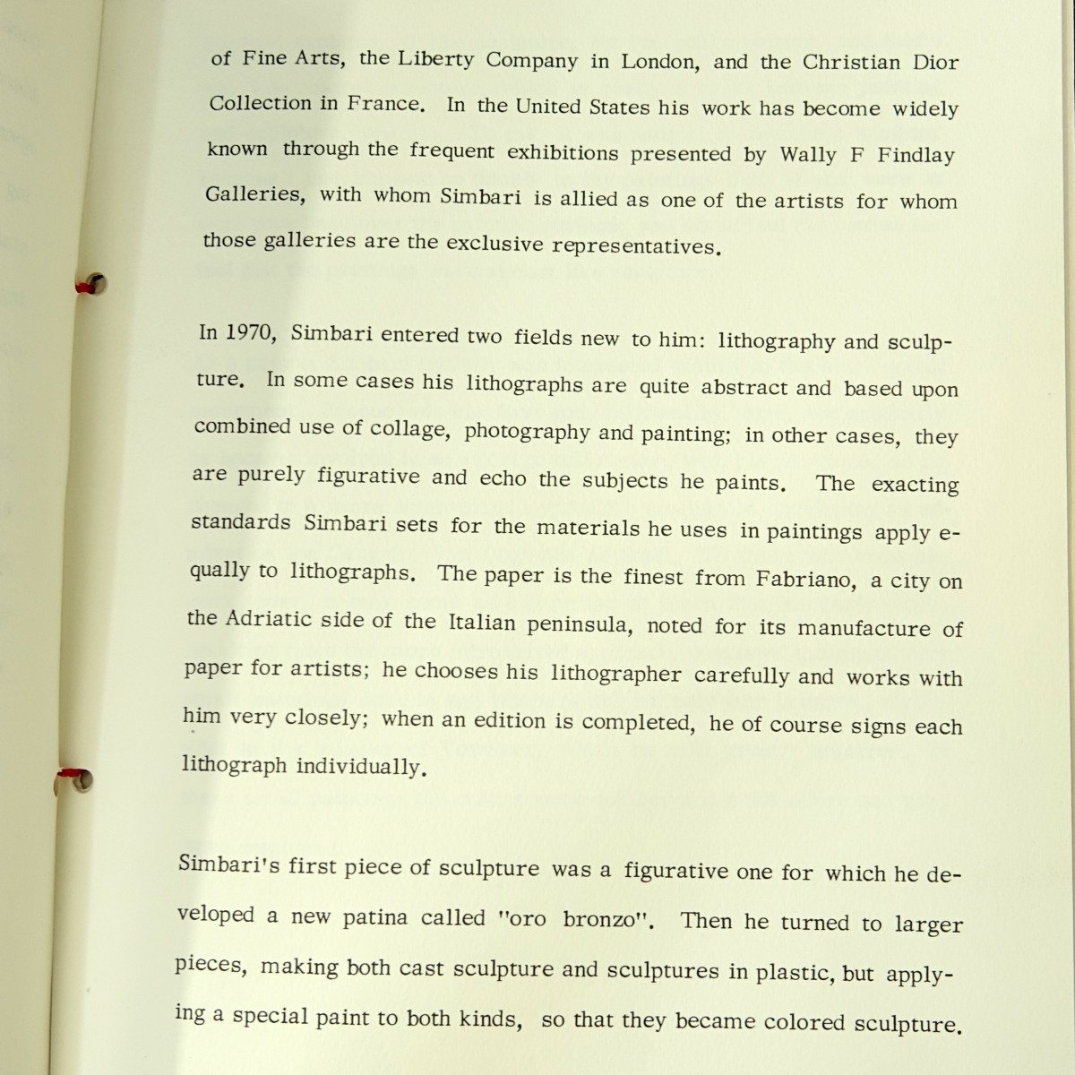 Nicola Simbari, Italian (1927-2012) Oil on canvas "Amelia". Signed lower right. Insurance appraisal from Wally Findlay Galleries as well as a biographical brochure accompanies the lot. Measures 38-3/4" x 38-3/4" (sight), frame measures 45-1/4" x 45-1/4". Condition: Very good condition. Estimate: $4000.00 - $6000.00 Domestic Shipping: Third party.
