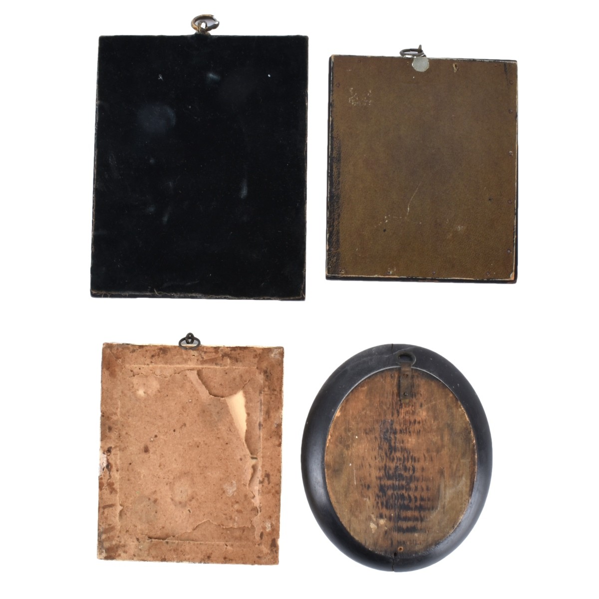 Four (4) 19th Century Miniature silhouette Portraits. One oval relief Ivory gentleman's portrait navy cross and Three silhouettes a man and two ladies in ink and gouache two with metal accent. All unsigned, wood frames. We Will Not Ship This Item Out of State of Florida. Anyone Having This Item Shipped Must Have a Florida Address or the Item will not be Shipped. We will Not Knowingly Sell Endangered Species outside of Legal Channels. Largest measures 6" H x 4-5/8" W Condition: Good condition. Oval frame has cracks and loss, Ivory needs to be cleaned. One lady on dark paper and stain. Estimate: $200.00 - $400.00 Domestic Shipping: $58.00