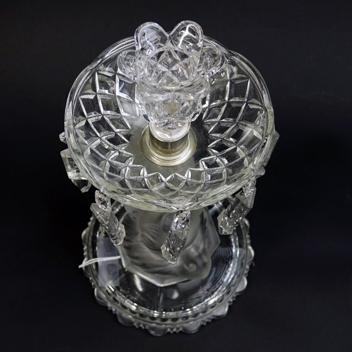 19/20th Century Baccarat Crystal Dolphin Candlestick with Hanging Crystal. Unmarked. Measures 13" H x 7" W. Condition: Good condition Estimate: $200.00 - $400.00 Domestic Shipping: $88.00
