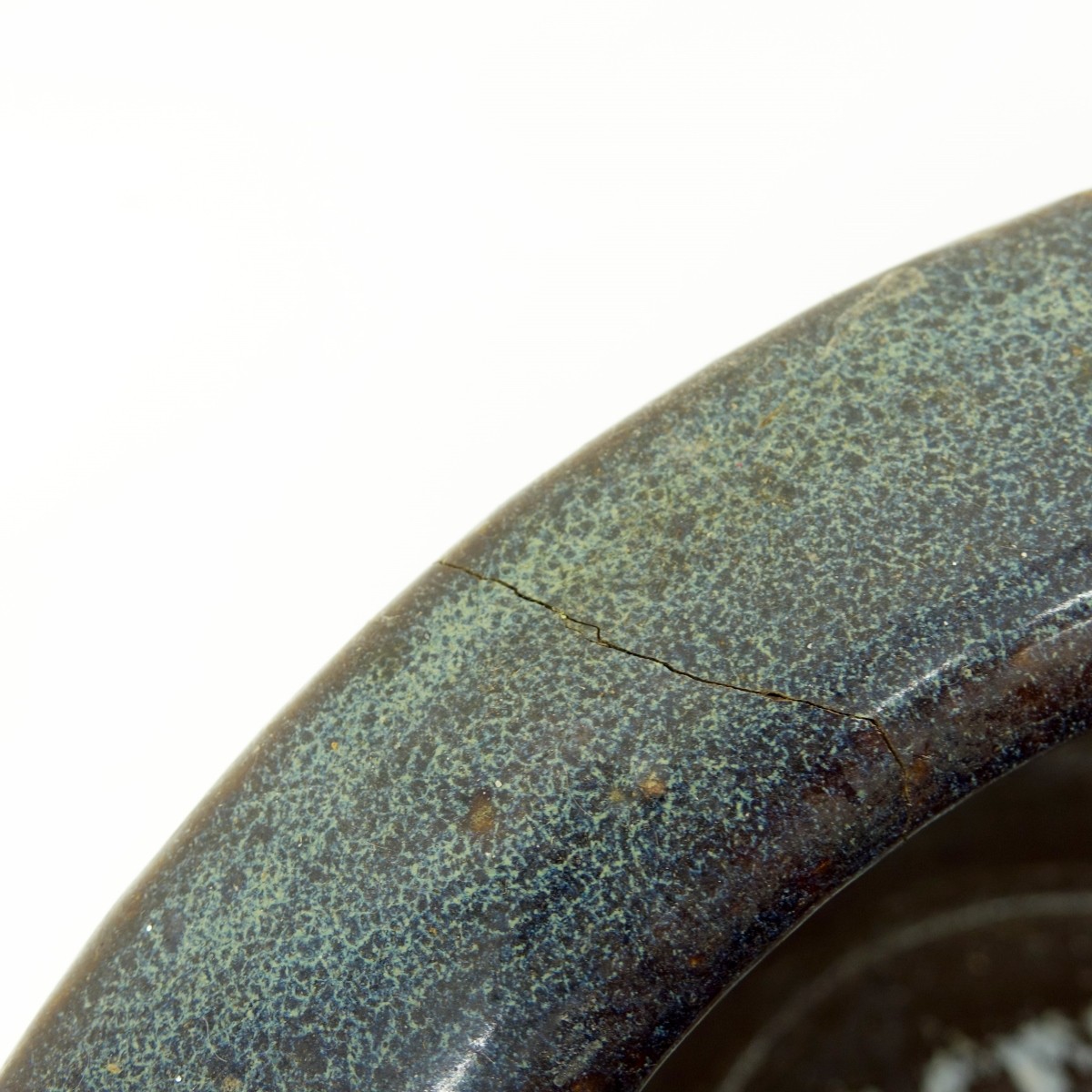 Large Chinese Flambe Glazed Pottery Planter with Mock Handles. Signed. Measures 13" H x 17" dia. Condition: Hairline and soiling on the surface Estimate: $150.00 - $250.00 Domestic Shipping: Third party