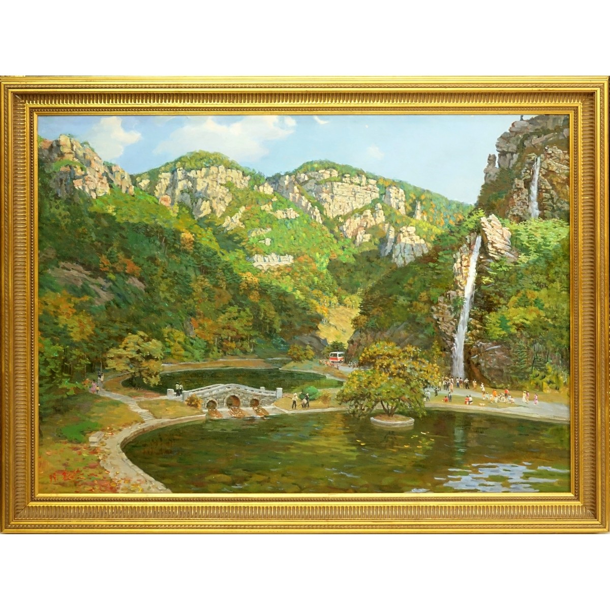 20th Century Chinese School Oil On Canvas, Outdoor Scene With Landscape, Signed And Dated 1999 Lower Left. Measures 25-3/4" H X 35-3/4" W, Frame Measures 30" H X 40-1/8" W. Condition: Good condition Estimate: $50.00 - $100.00 Domestic Shipping: Third party