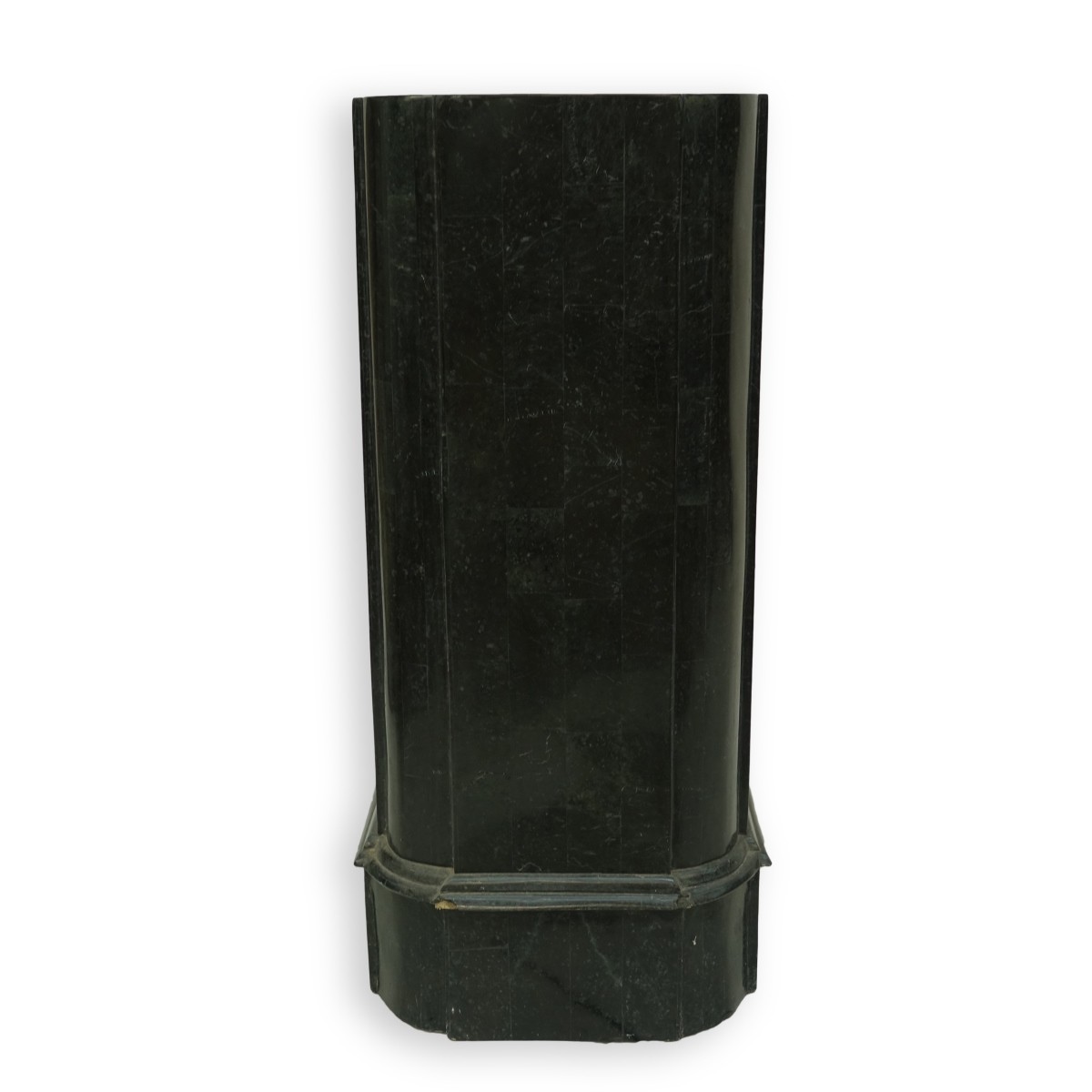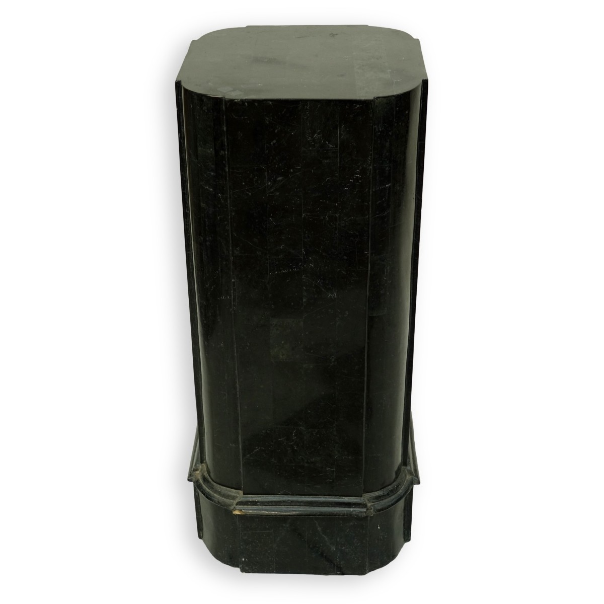 Mid Century Tessellated Faux Marble Pedestal. Measures 36-1/2" H x 16" W. Condition: Chips and losses to base Estimate: $50.00 - $150.00 Domestic Shipping: Third party