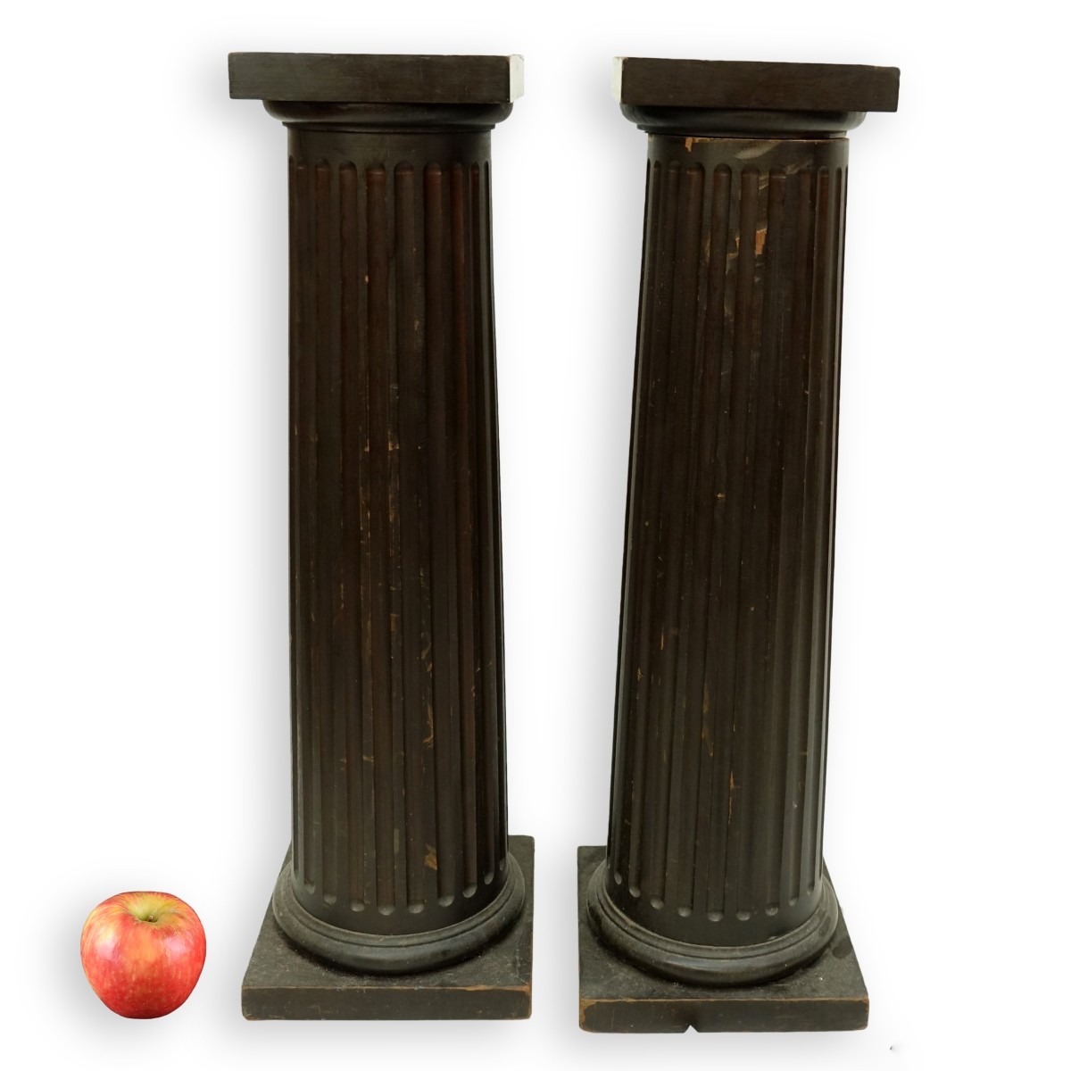 Pair of Mid Century Italian Polychrome Carved Wooden Column Pedestal. Tallest measures 41-1/2" H, top measure 10-1/2" square. Condition: Scratches and schips Estimate: $100.00 - $150.00 Domestic Shipping: Third party