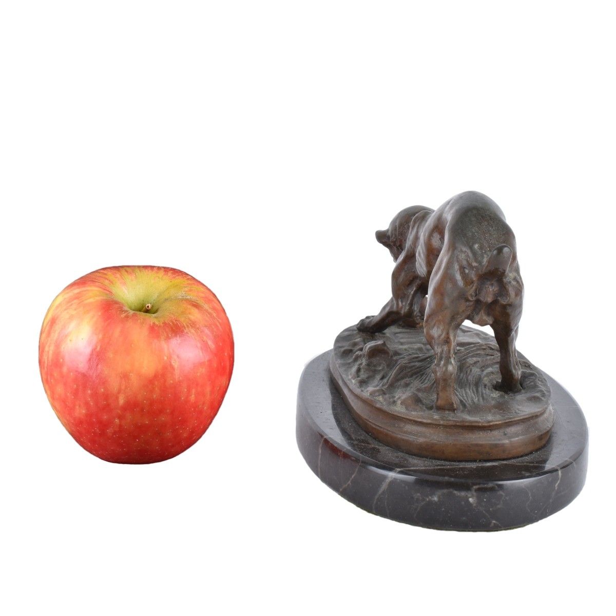 Antoine-Louis Barye, French (1796 - 1875) Bronze Sculpture on Marble Base "Dog with Mouse" Signed "Barye" on Obverse Side. Measures 5" H x 7" W. Condition: Rubbing otherwise good condition Estimate: $100.00 - $300.00 Domestic Shipping: $55.00