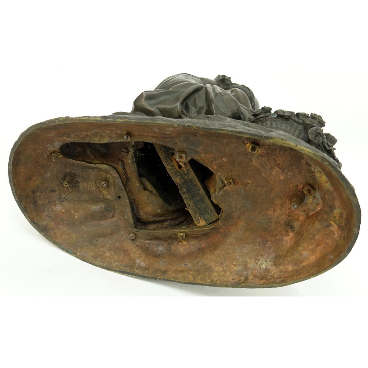 Pierre Alexandre Schoenewerk, French (1820 - 1885) Bronze Sculpture, Women Picking Flowers, Signed "Schoenewerk Sculp" Lower Right, "L Marchand" Foundry Mark Lower Left. Measures 13" H x 12-1/2" W Condition: Good condition Estimate: $300.00 - $500.00 Domestic Shipping: Third party