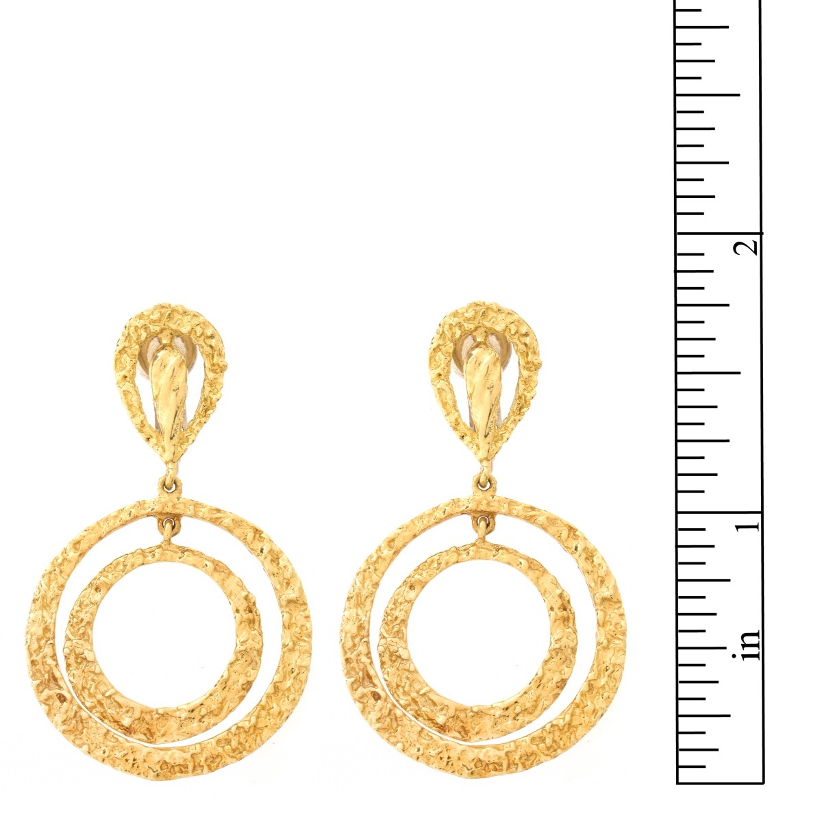 Vintage 14 Karat Yellow Gold Hoop Earrings, Clip Backs. Measure 1-3/4" L, 1" W. Approx. weight: 13.9 grams. Condition: Good vintage condition. Estimate: $200.00 - $400.00 Domestic Shipping: $30.00