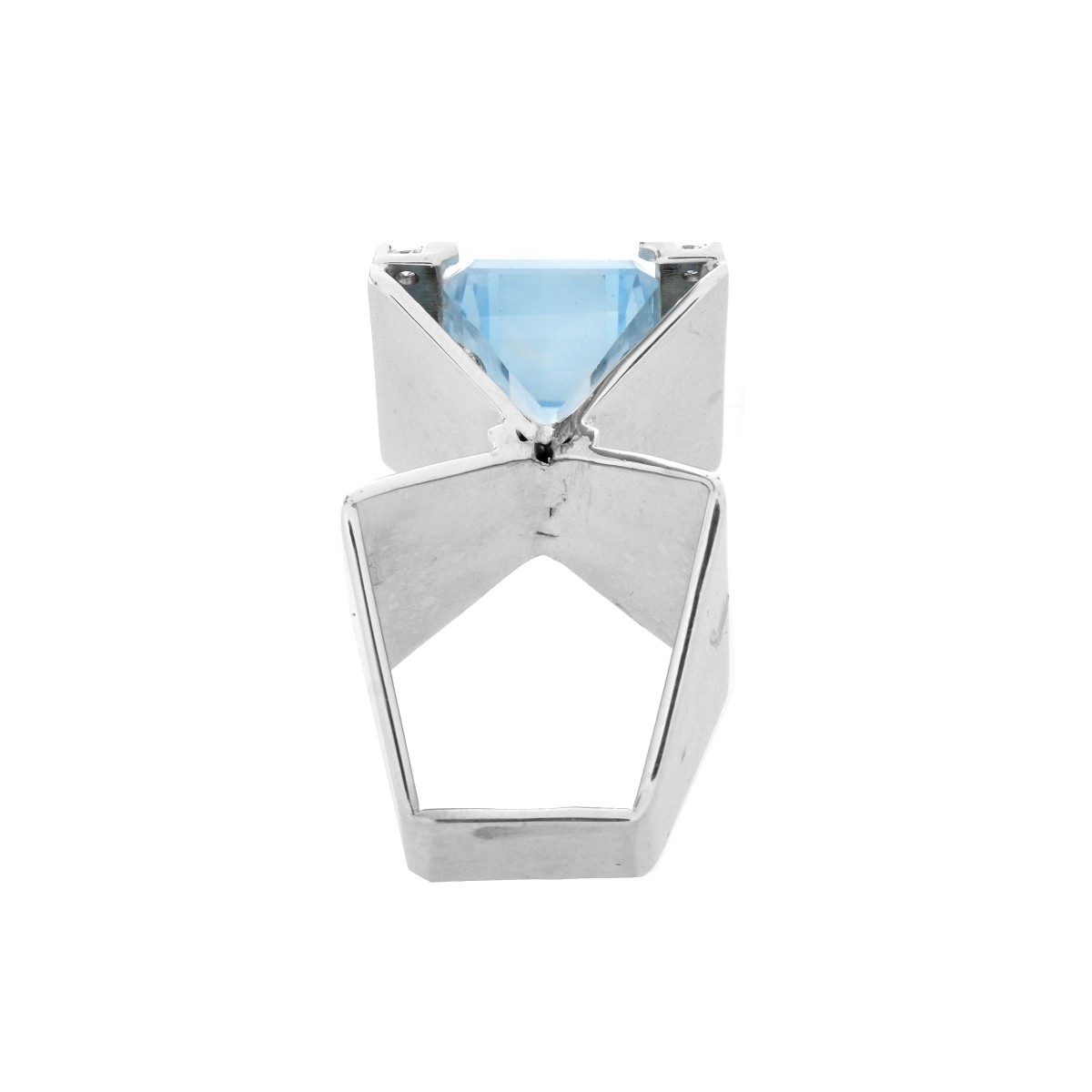 Contemporary Emerald Cut Blue Topaz, .50 Carat TW Fourteen Round Brilliant Cut Diamond and 14 Karat White Gold Ring. Topaz measures 15.9 x 11.40 x 7.86mm. Diamonds D-E color, VS1 clarity. Stamped 14K. Ring size 6. Approx. weight: 18.3 grams. Condition: Very good condition. Estimate: $800.00 - $1200.00 Domestic Shipping: $28.00
