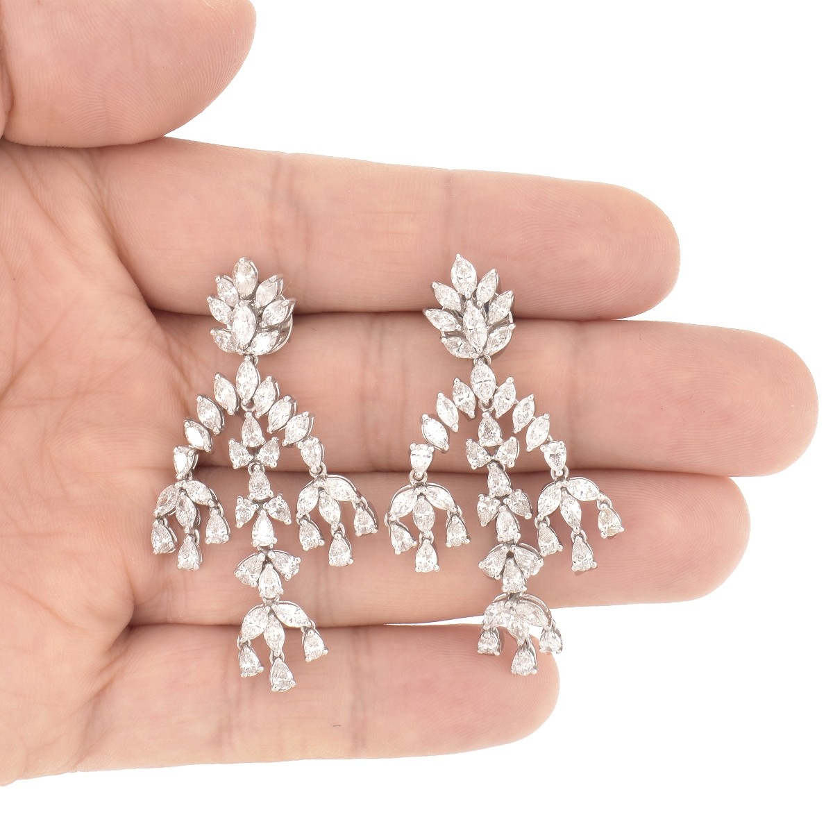 Approx. 8.50 Carat TW Marquise Cut Diamond and 18 Karat White Gold Chandelier Earrings. Diamonds E-F color, VS1-VS2 clarity. Stamped 18K. Measure 2" L, 1" W. Approx. weight: 16.6 grams. Condition: Very good condition. Estimate: $5500.00 - $6500.00 Domestic Shipping: $30.00