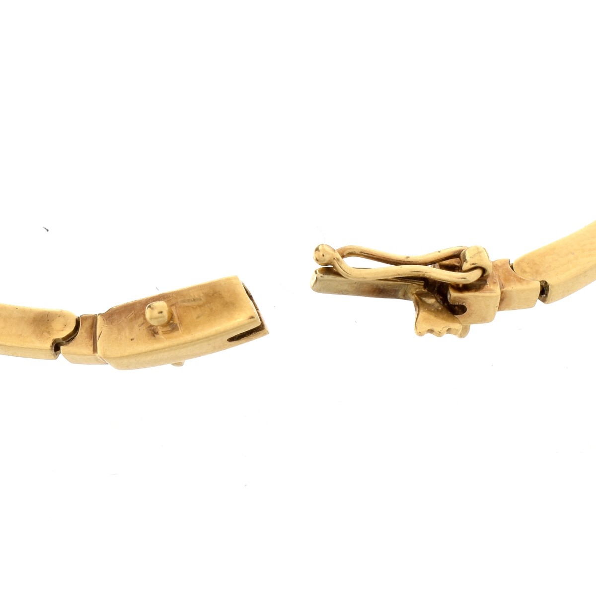Vintage Diamond, Emerald, and 14 Karat Yellow Gold Bracelet. Set with single cut diamonds along with one round brilliant cut diamond. Diamonds F-G color, SI-1 clarity. Stamped 14K. Measures 6" L. Approx weight: 13.0 grams. Condition: Good condition Estimate: $300.00 - $400.00 Domestic Shipping: $30.00