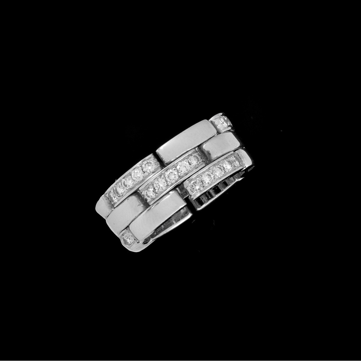 Contemporary Cartier Approx. 1.35 Carat TW Round Brilliant Cut Diamond and 18K Panthere Ring. Diamonds D-E color, VVS-VS clarity. Signed, hallmarked, 750, numbered 721566. Ring size 5-1/4. Approx. weight: 11.3 grams. Condition: Very good condition. Estimate: $2000.00 - $4000.00 Domestic Shipping: $28.00