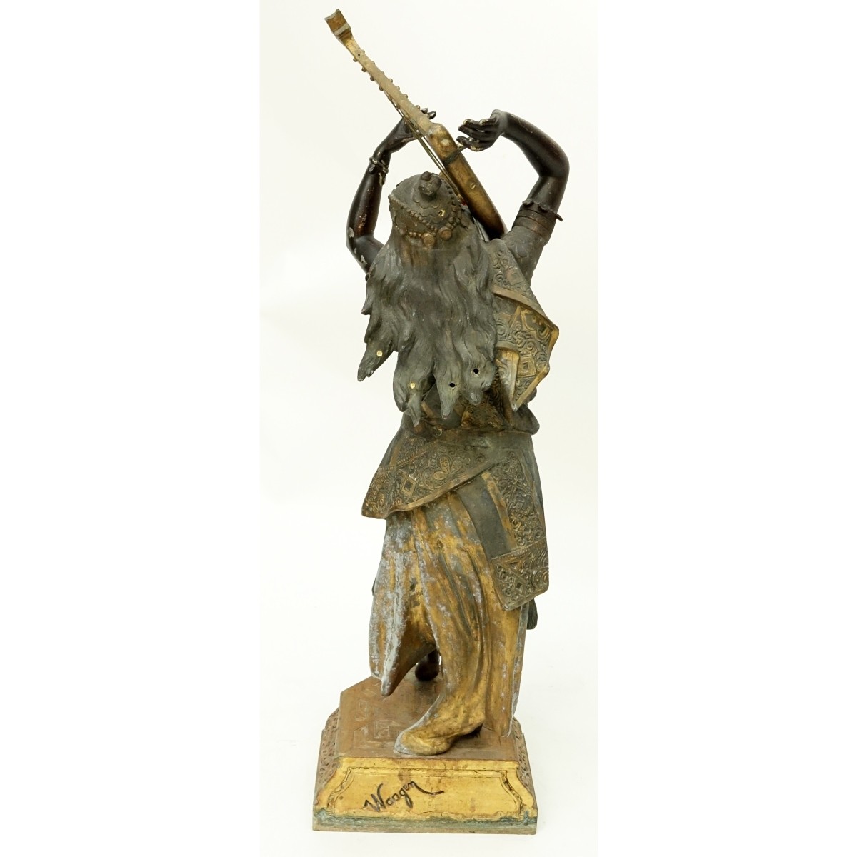 Arthur Waagen, German (1833-1898) Polychromed French Metal Sculpture "Zingara". Signed. Measures 37" H. Condition: Wear, oxidation. Estimate: $100.00 - $200.00 Domestic Shipping: Third party