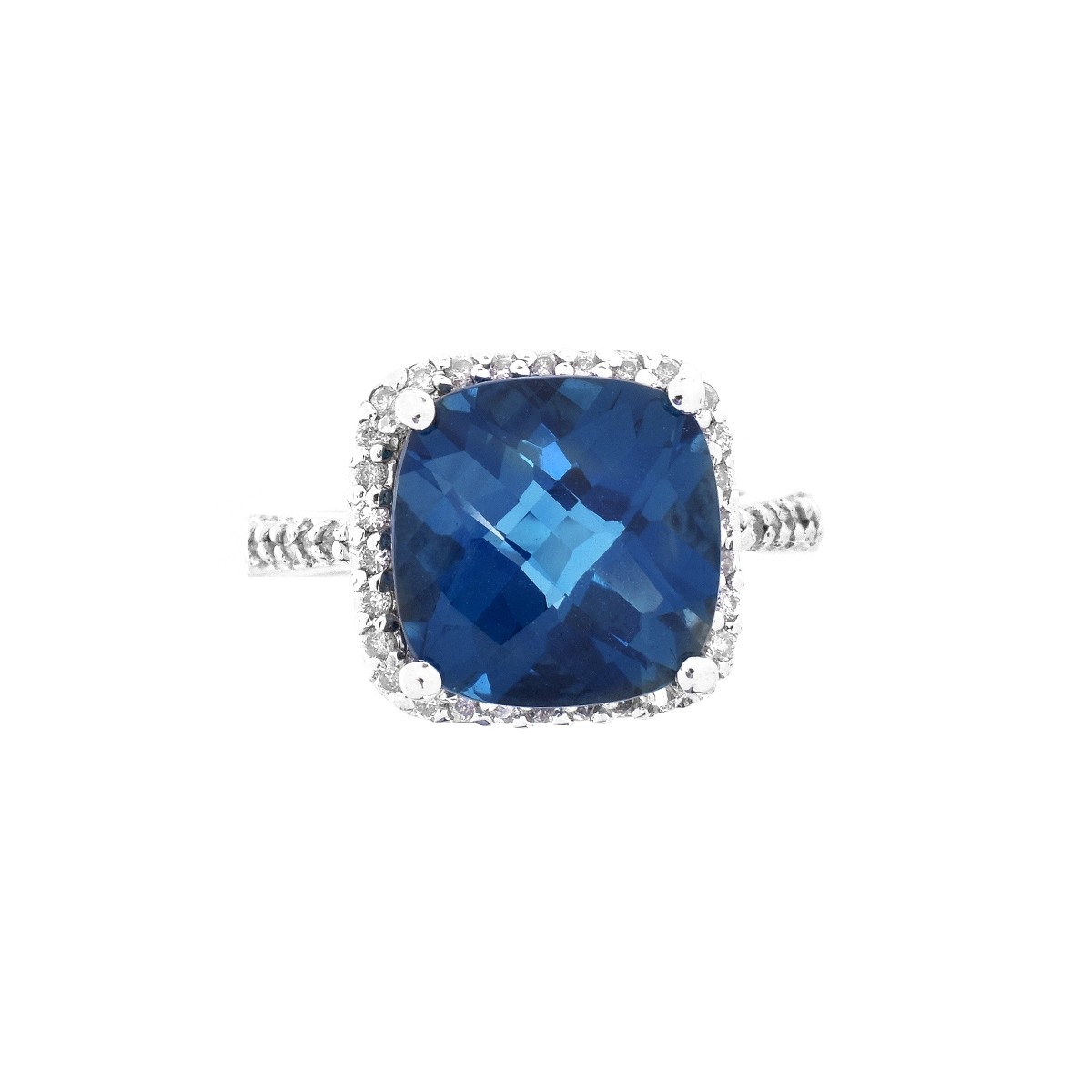 Rose Cut London Blue Topaz, Diamond and 14 Karat White Gold Ring. Topaz with vivid color, measures 1mm x 11mm. Stamped 14K. Ring size 6. Approx. weight: 7.0 grams. Condition: Very good condition. Estimate: $200.00 - $300.00 Domestic Shipping: $28.00