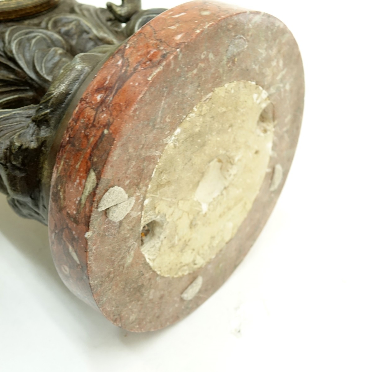 Item Condition: Good condition, not running, no keys, clock face name is rubbed out. No cover to face. Few flee bites to rouge marble. Please note the gallery does not warranty the running condition of clocks.