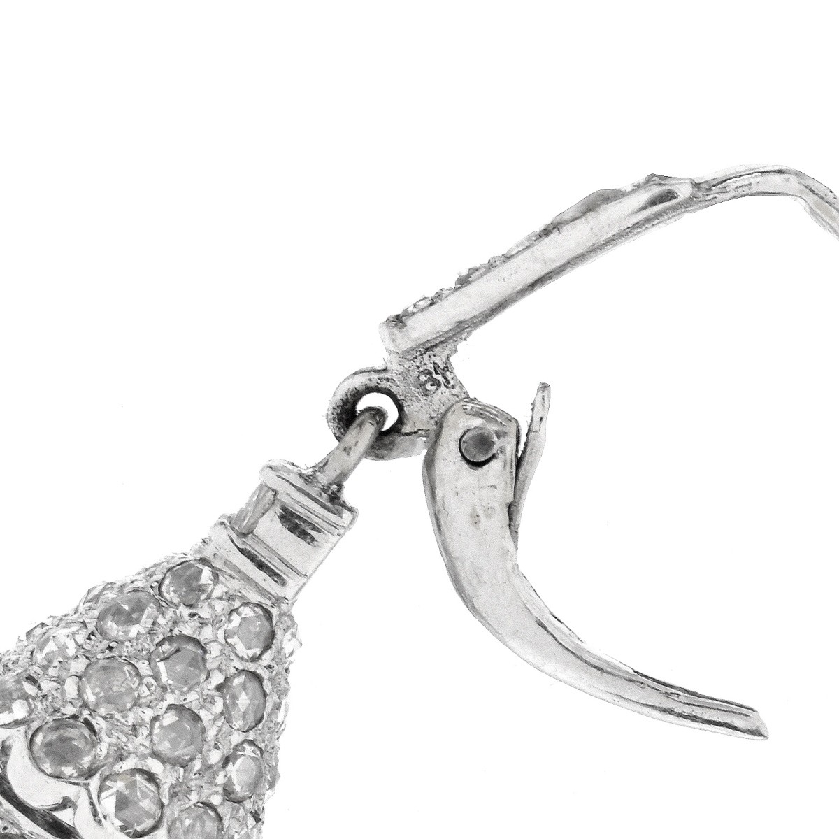 Approx. 7.05 Carat TW Rose Cut Diamond and 18 Karat White Gold Pendant Earrings. Diamonds E-F color, VS-SI clarity. Stamped 18. Measure 1-3/4" L, 1/2" W. Approx. weight: 16.0 grams. Condition: Very good condition. Estimate: $3500.00 - $4500.00 Domestic Shipping: $30.00